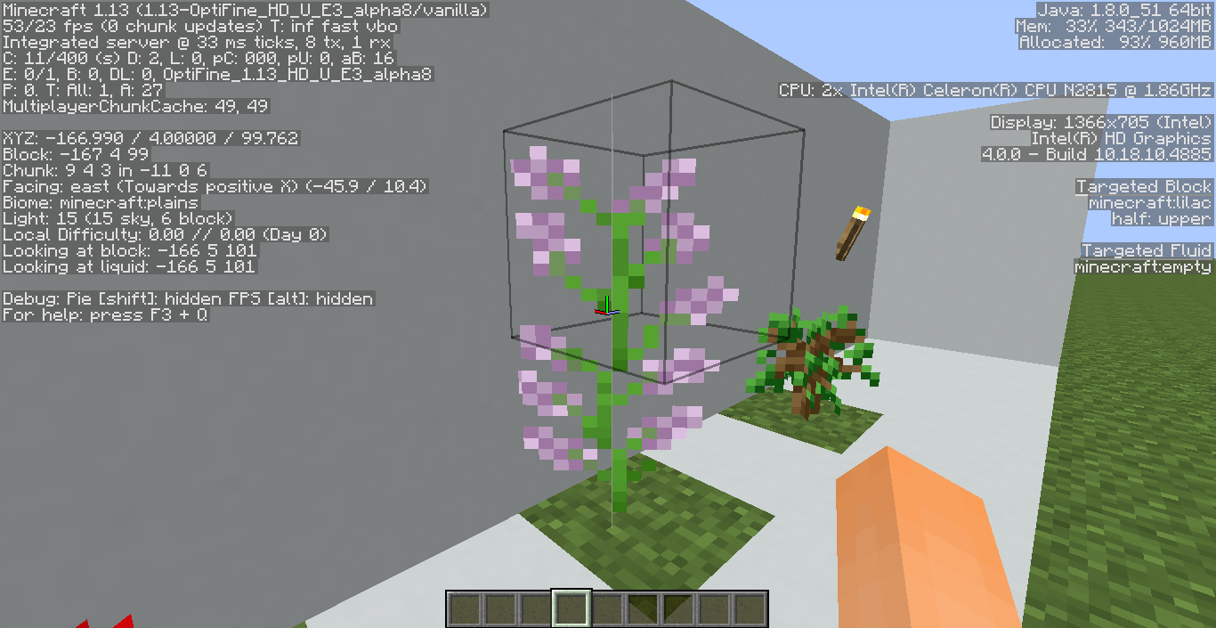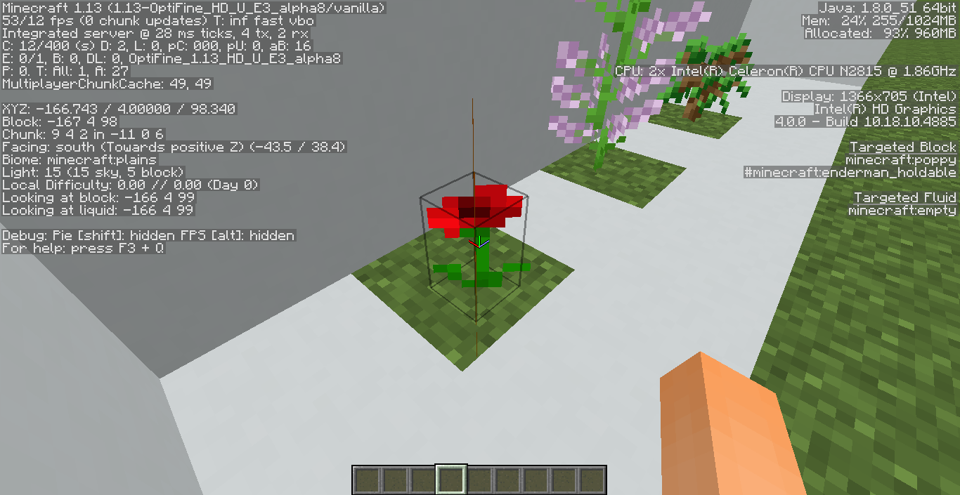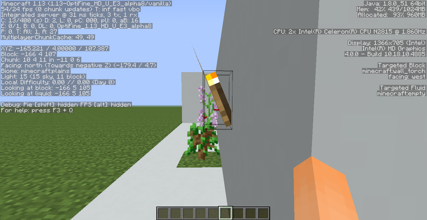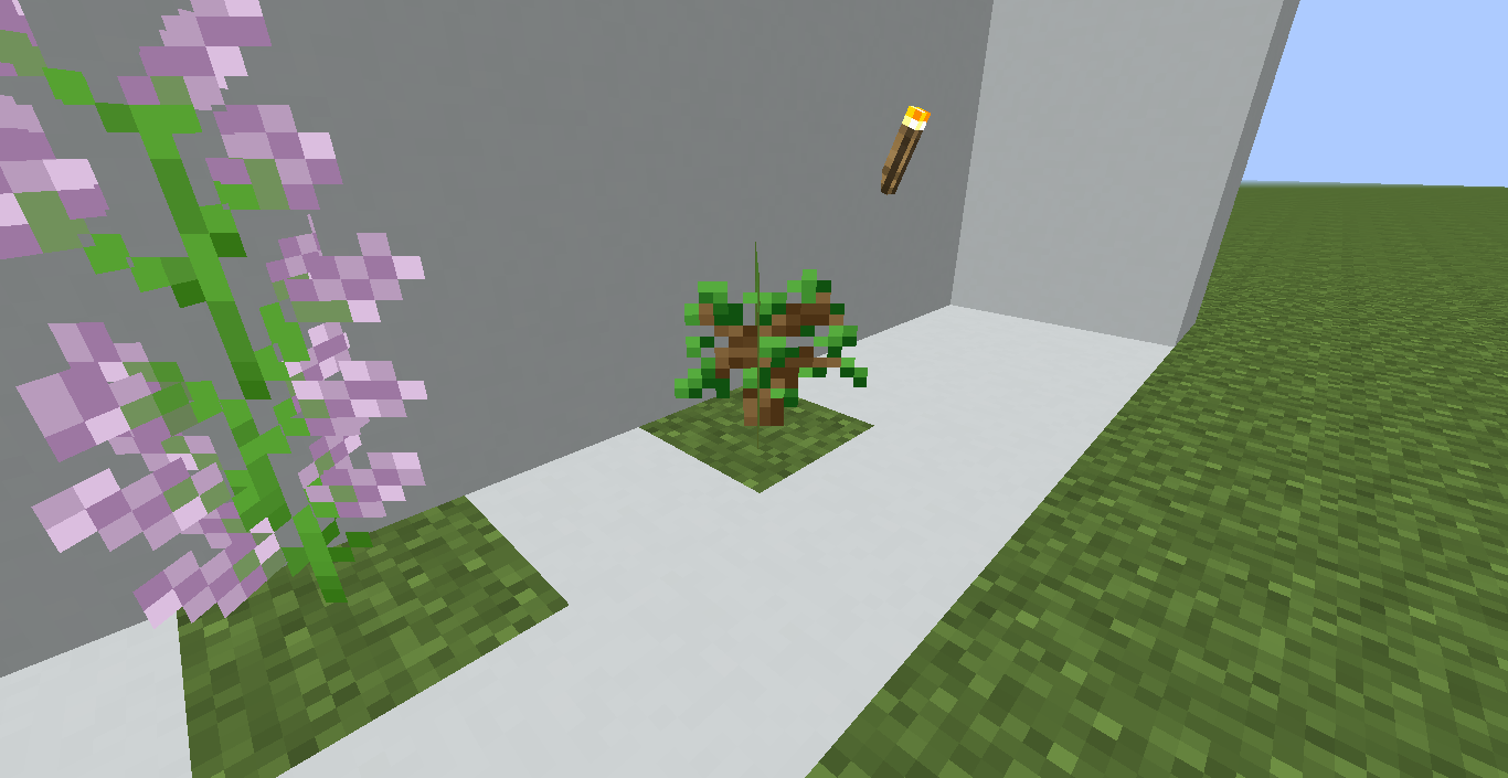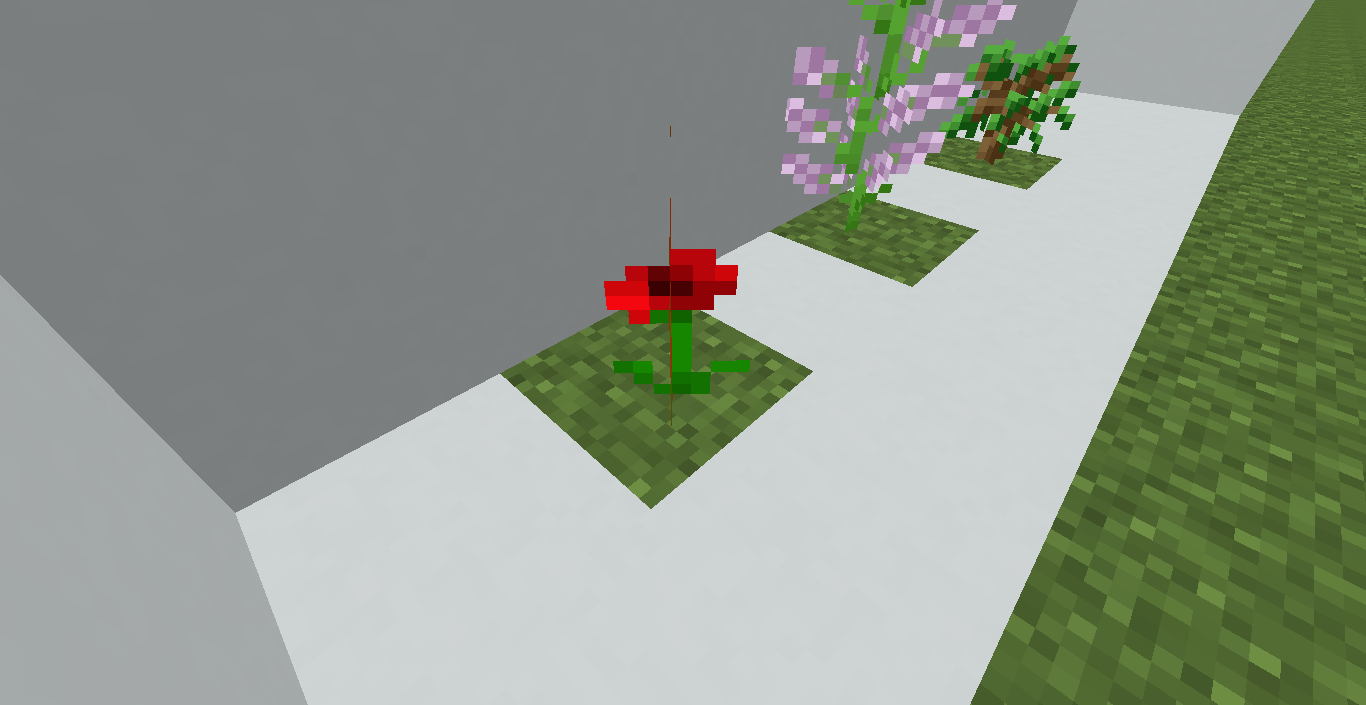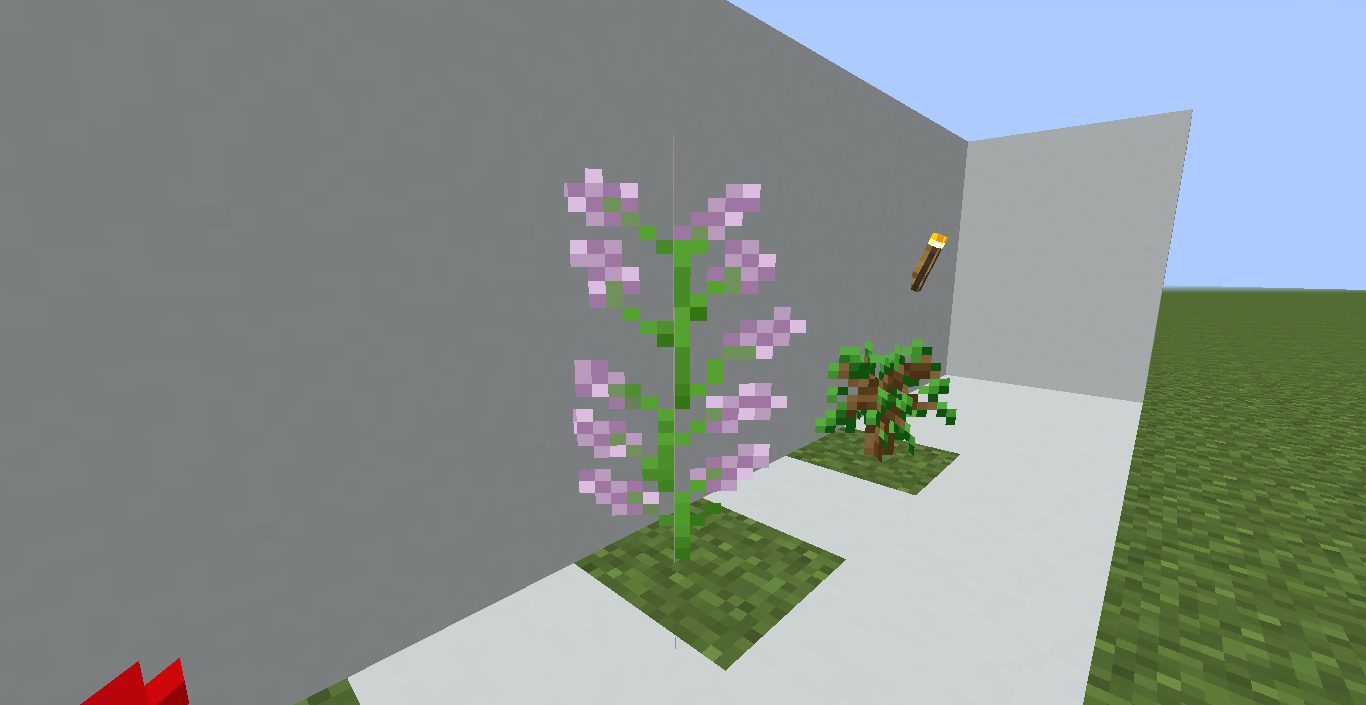 For some time now, I've been noticing a strange visual glitch with non-solid blocks like flowers, saplings, torches, etc. Basically, the texture of the block warps upward when looking at it from a certain angle. For blocks like flowers, extra tallgrass, and saplings, warping occurs at any corner except for sides, and for blocks like torches, you must be at least two blocks away and looking at it from the side (no corners). I have also included some images so you get a better understanding of what it looks like.
