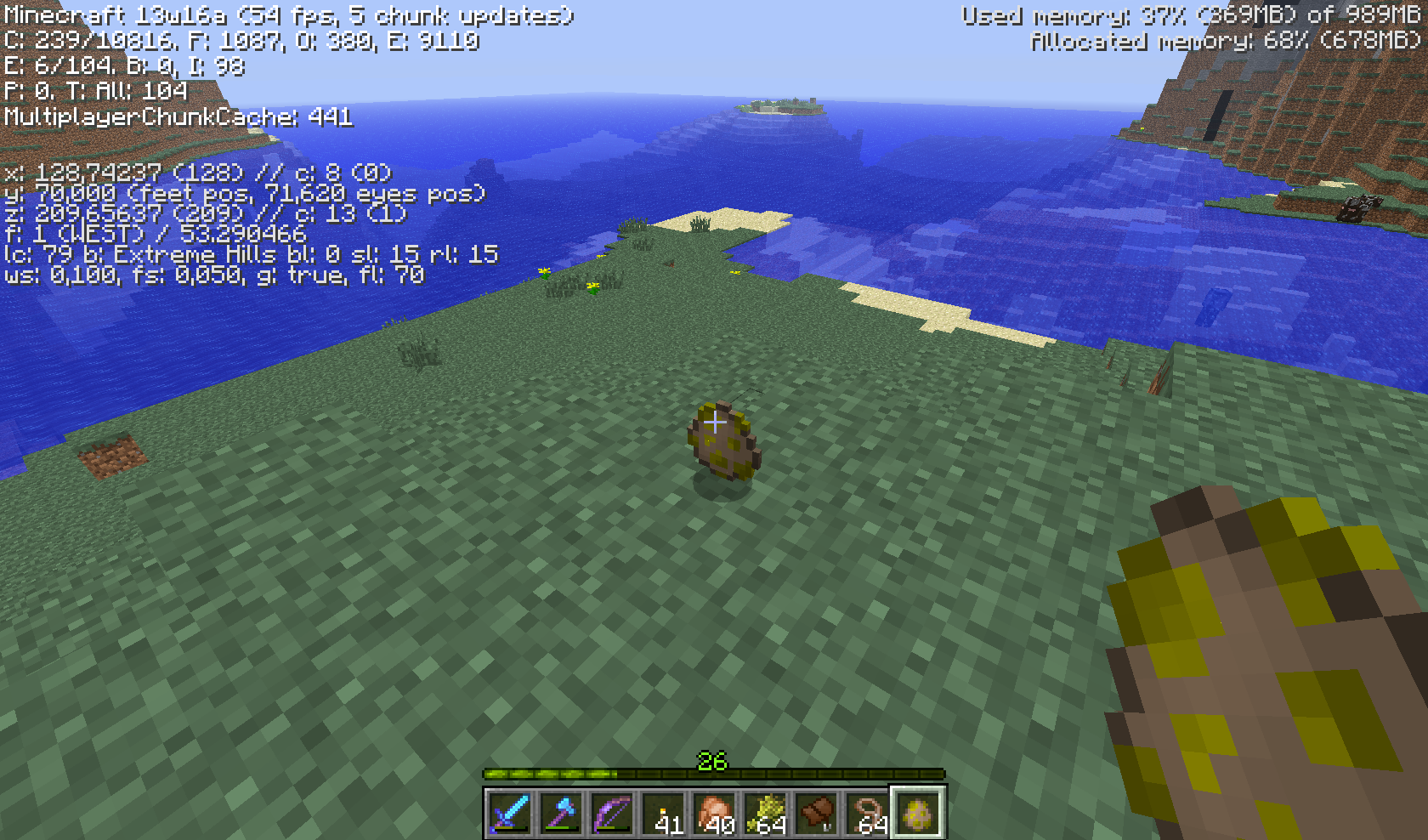 Look at the screenshots, the first picture is with the spawnegg and the second without. On the first you can see that the color of the experiencebar is olive. On the second you can see the "normal" color.