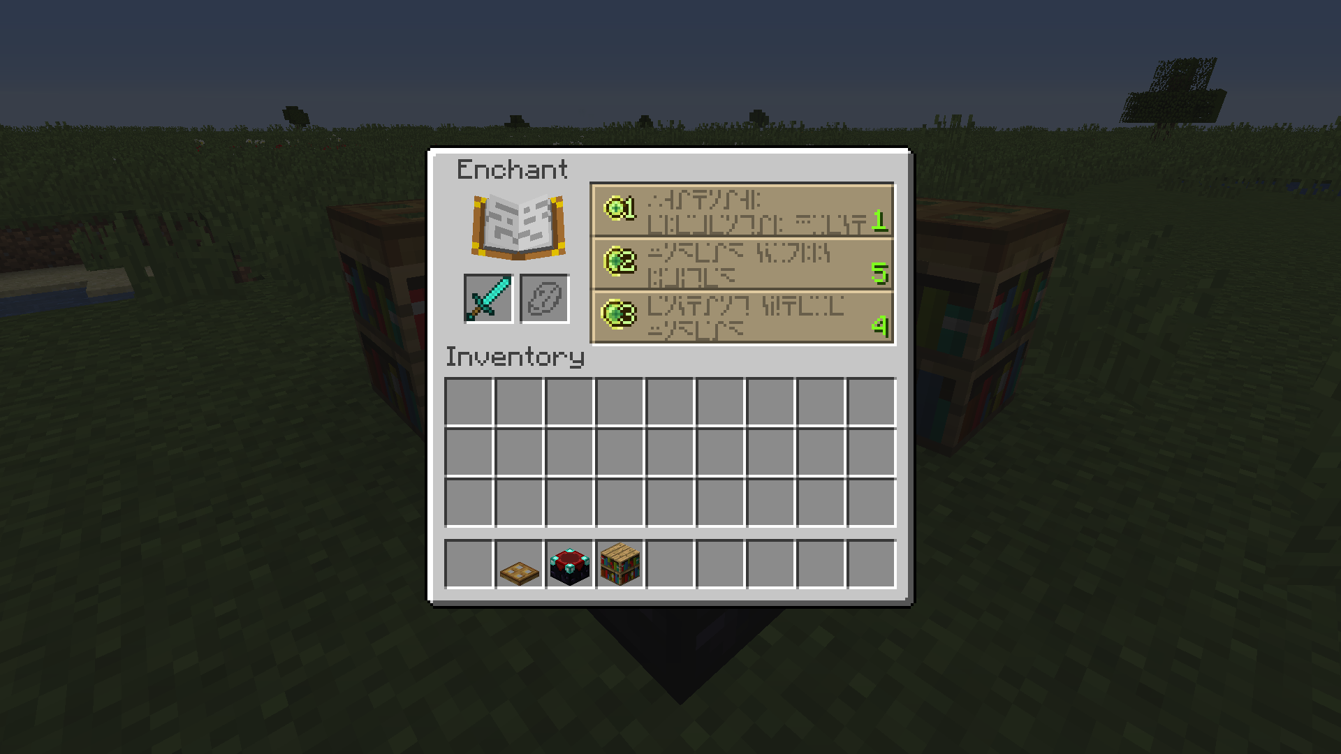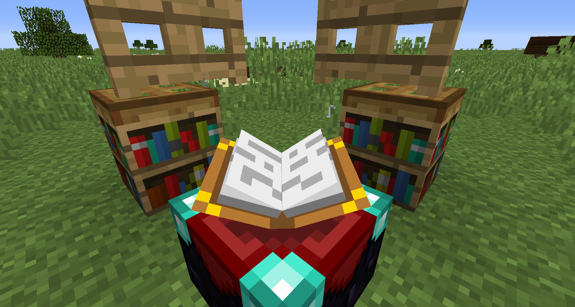If you place a Fence Gate or Trapdoor as shown on the picture the bookshelf claerly sends out particles to the Enchanting Table, assuming that it is enhancing the enschantment level - which it isn't going to do... The Fence Gate or Trapdoor aren't even blocking the line of sight towards the Bookshelf - there is AIR inbetween.