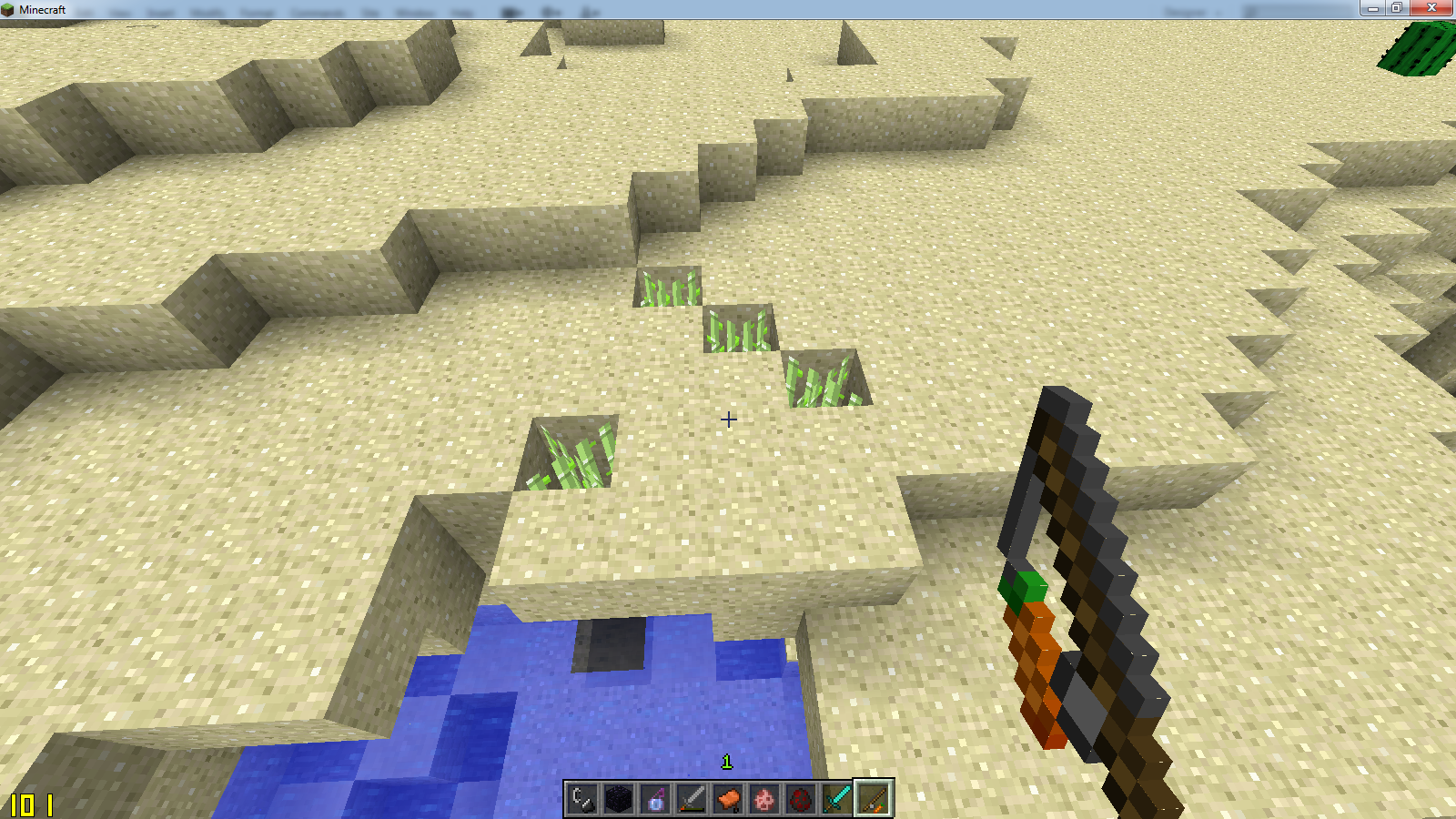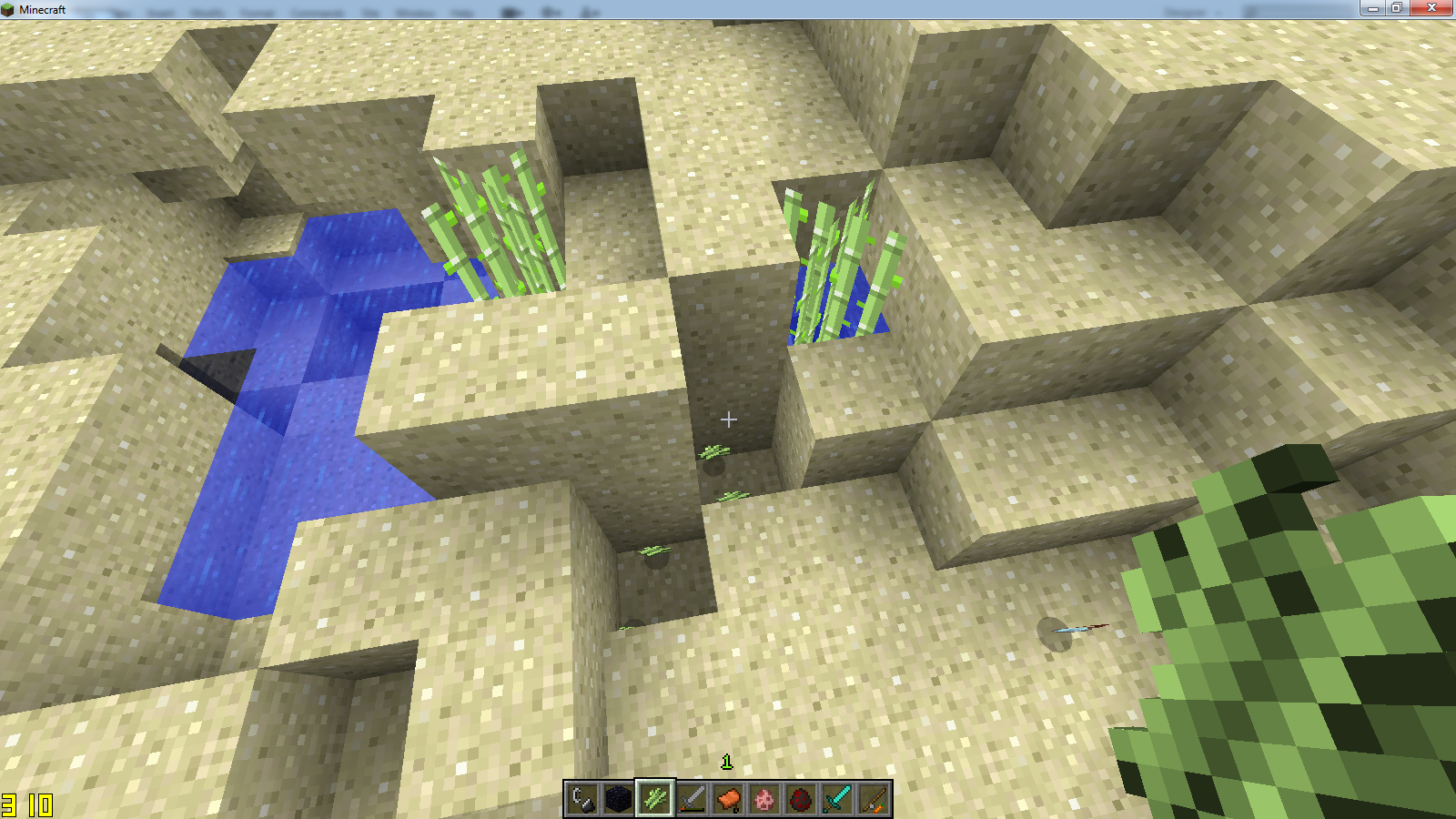nodrops.png: Screenshot of the generated sugarcanes and the sand around it