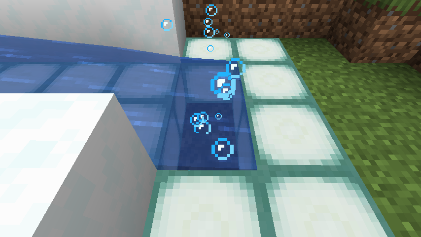 Bubble particles would only be produced within water source blocks and not extend into flowing water.