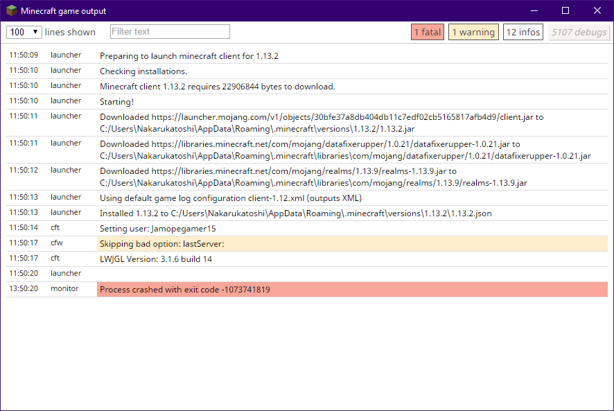 Realmente al descargarla me salió este error y no me abrió el juego, después lo volví a intentar, pude entrar pero el error aparecía en el log aún así, asi que he decidido publicarlo para segurarme de que no perderé mis mundos por si se crashea de repente.