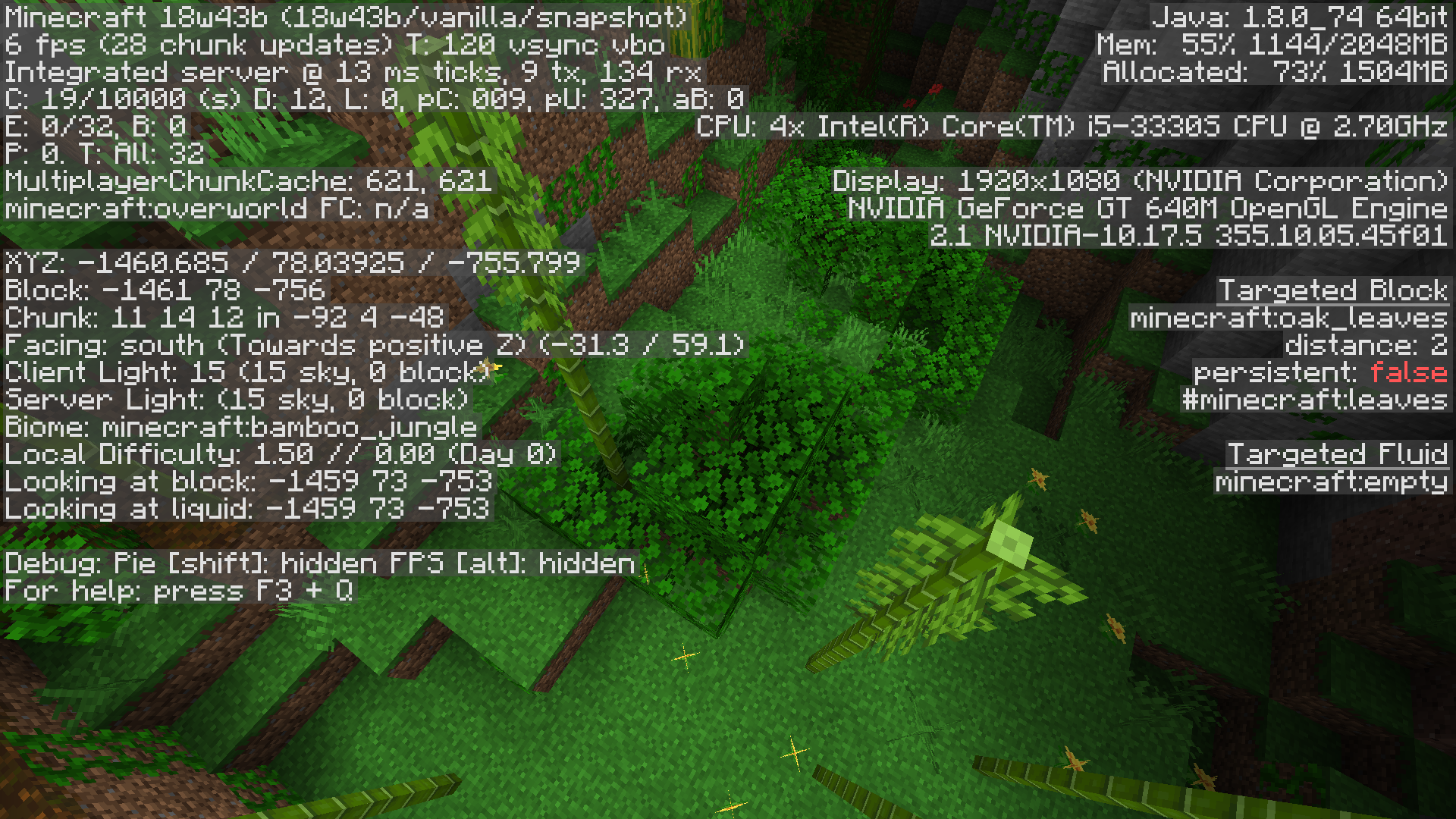 Coordinates: /tp @s -1476 94 -778 70 50When bamboo generates, it replaces every leave block in its way.