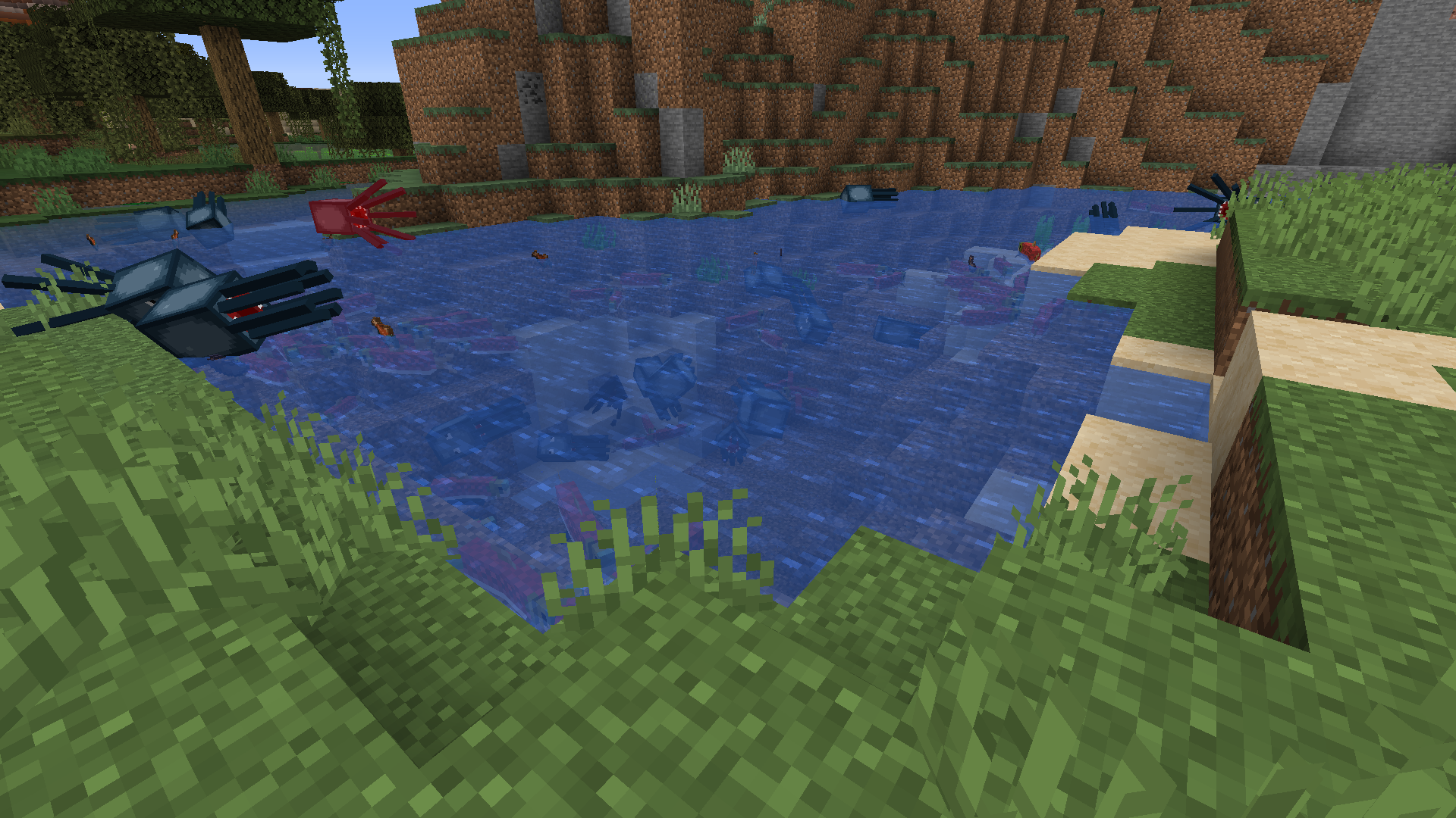 about 15 aquatic mobs in a river in a single player setting