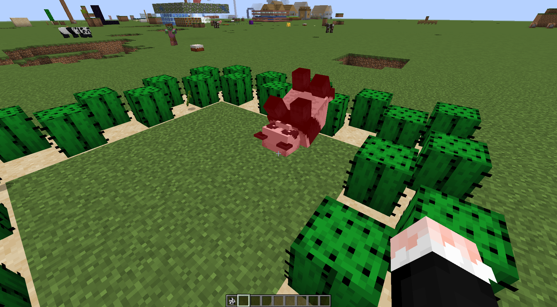 /summon minecraft:panda ~ ~ ~ {MainGene:"playful"}Waiting for it to roll into the void.