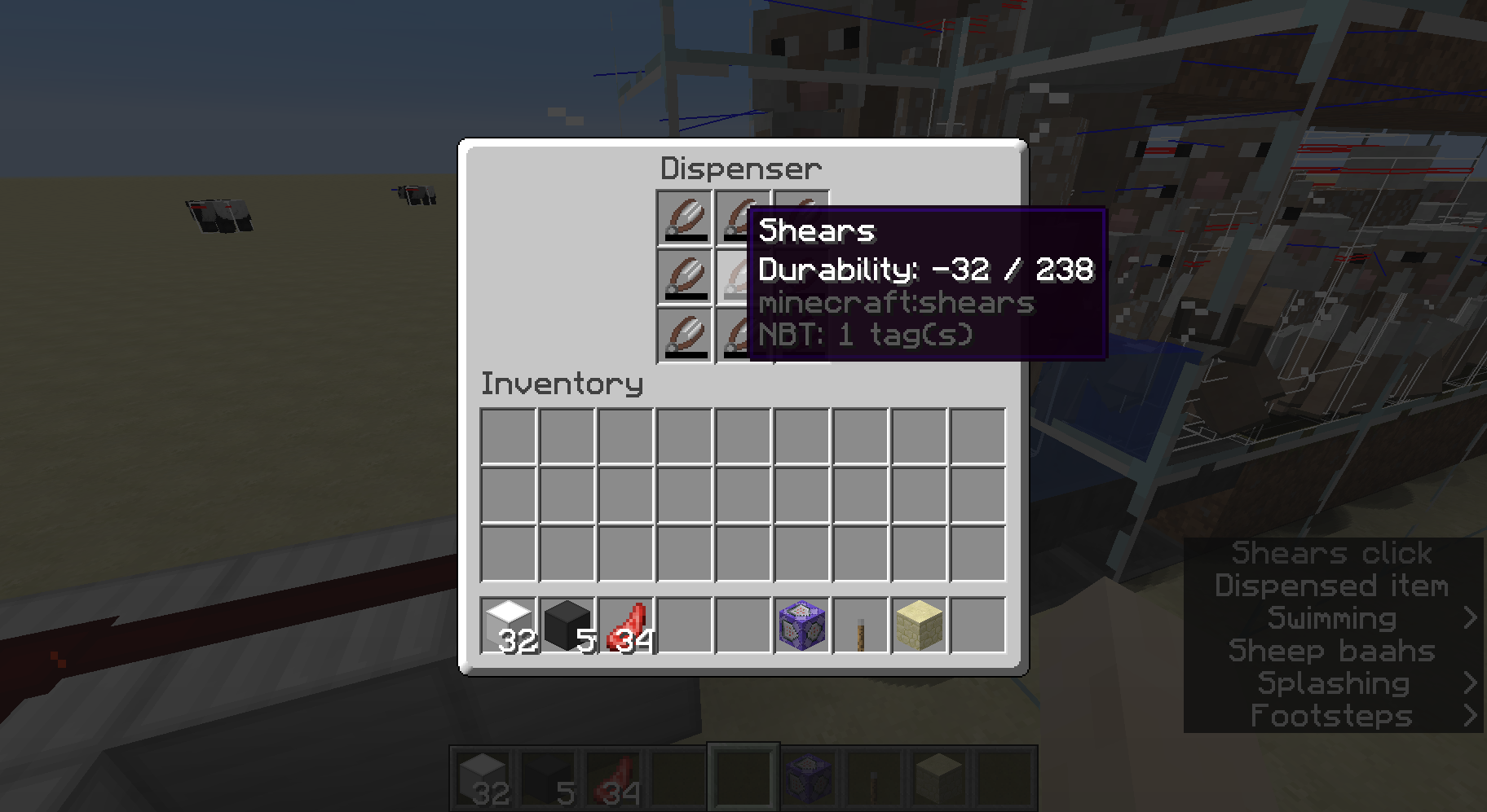 /give @s minecraft:shears{Damage:237}Put it in a dispenser, spawn some sheep