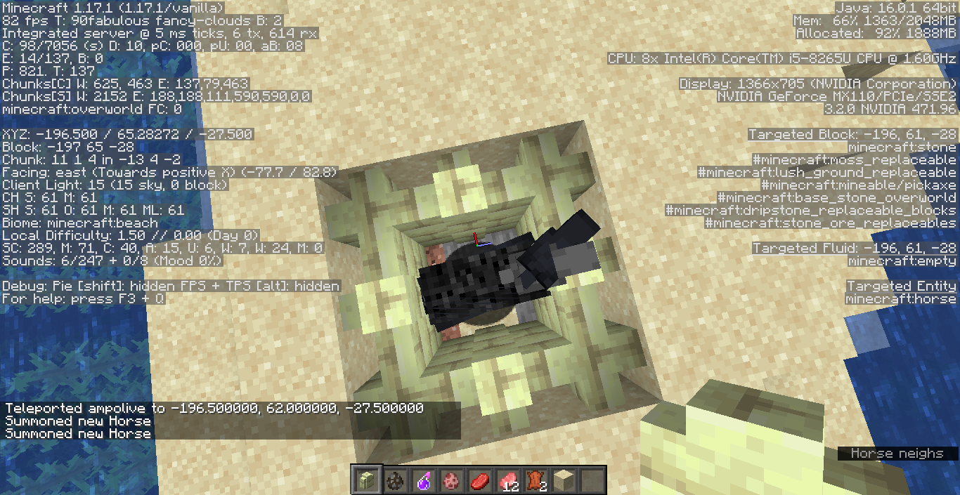 Minecraft 1.13.2, Minecraft 18w43a, Minecraft 18w43b, 1.14.4, 19w39a, 1.15.2, 20w21a, 1.16 Pre-release 1, 1.16 Pre-release 2, 1.16 Pre-release 3, 1.16 Pre-release 4, 1.16 Pre-release 5, 1.16 Pre-release 7, 20w28a, 20w29a, 20w30a, 1.16.2 Pre-release 1, 1.16.4, 20w51a, 21w03a, 1.16.5, 21w06a, 21w08b, 21w10a, 21w15a, 21w17a, 21w20a, 1.17 Pre-release 1, 1.17, 1.17.1, 21w38a, 21w41a, 21w42a, 21w43a, 1.18 Pre-release 6, 1.18 Release Candidate 3, 1.18, 1.18.1, 22w06a, 1.18.2, 22w11a, 22w12a, 22w13a, 22w15a, 22w18a, 1.19 Pre-release 1, 1.19 Pre-release 3, 1.19 Pre-release 5, 1.19, 1.19.2, 23w06a, 1.19.4, 23w16a, 1.20.1, 1.20.4, 1.21