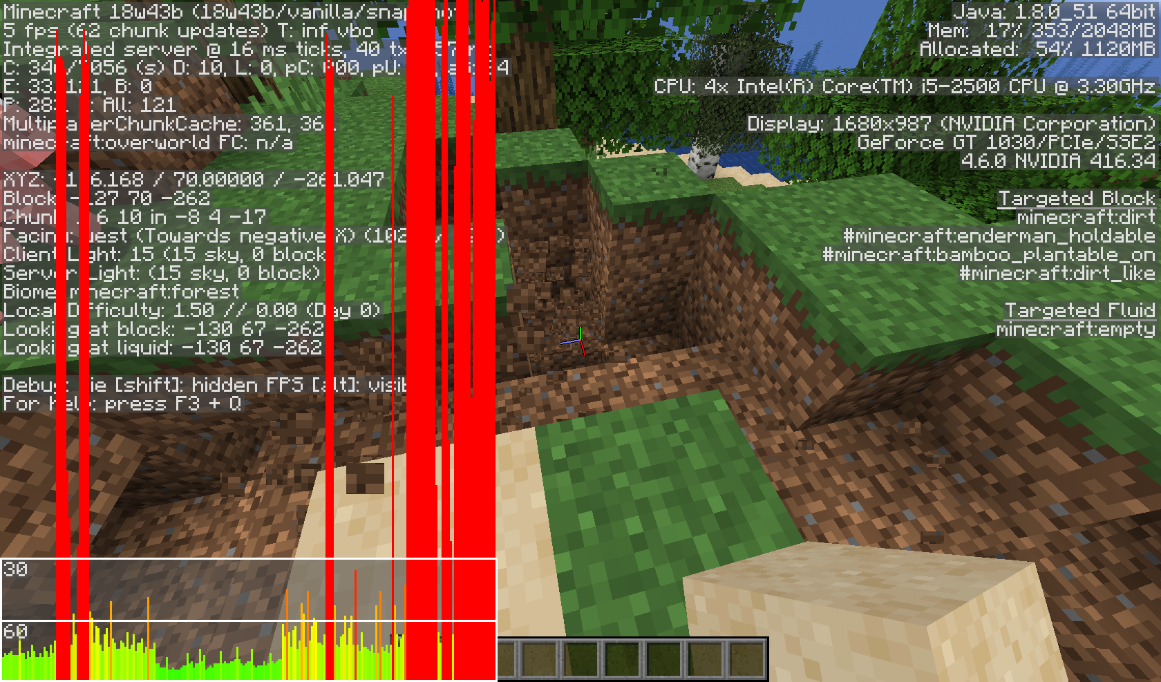 Block updates cause lag spikes. This includes placing and breaking a block.