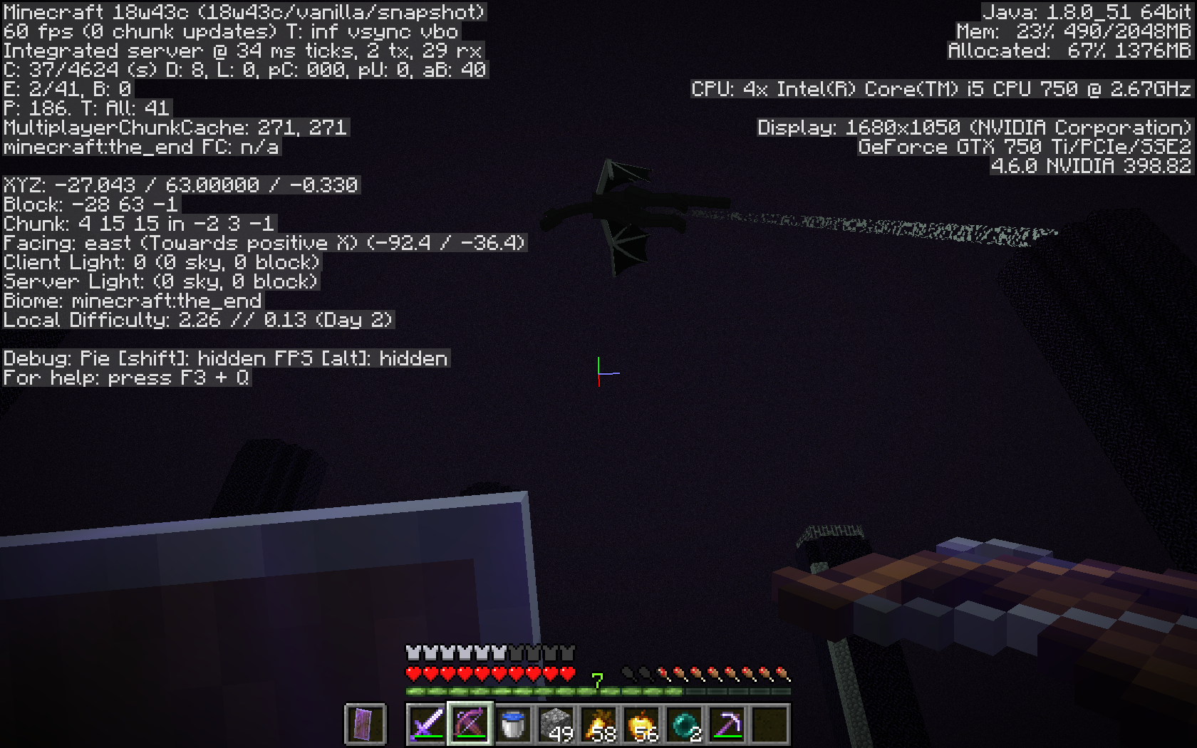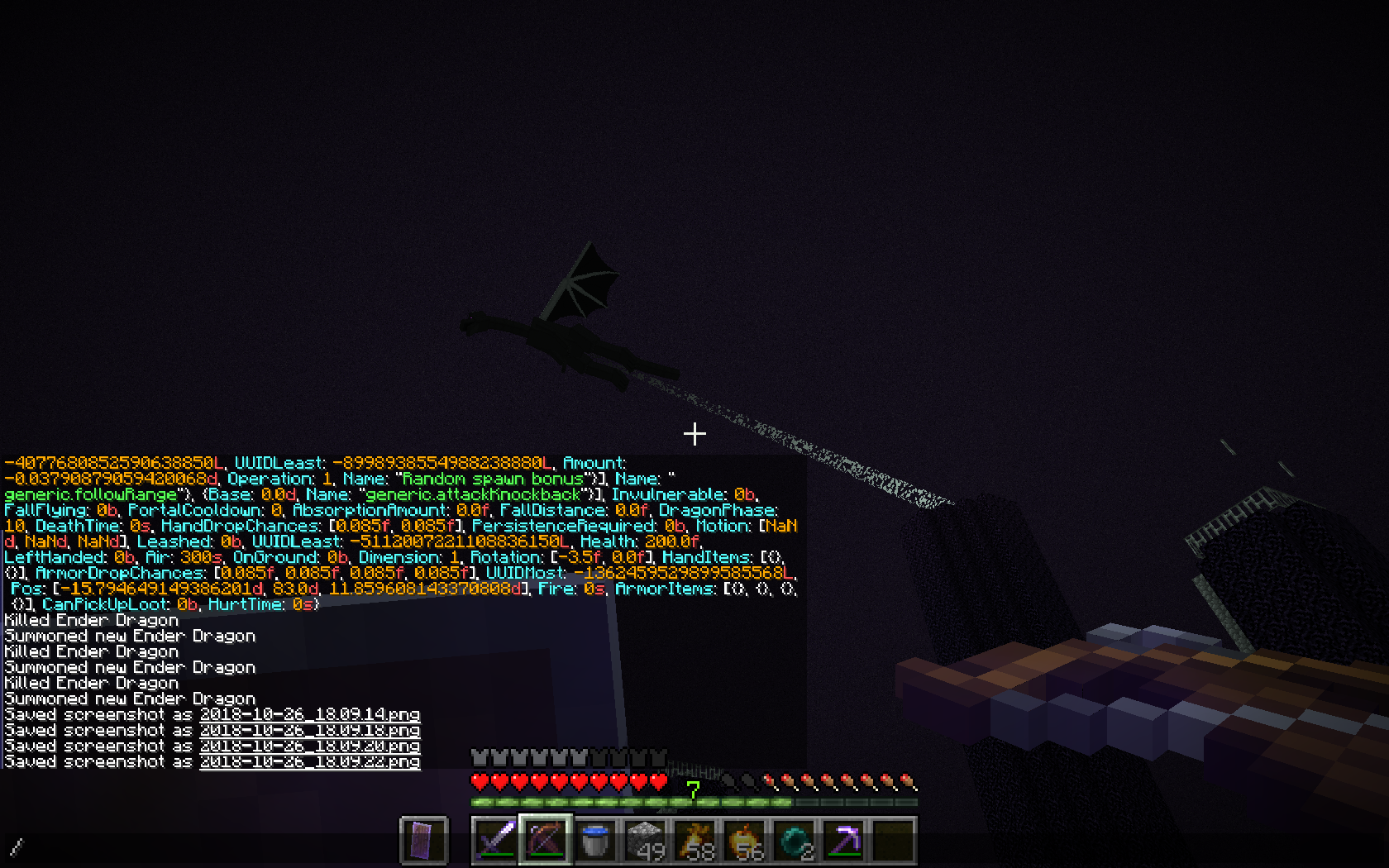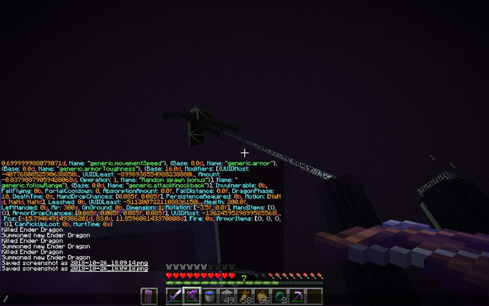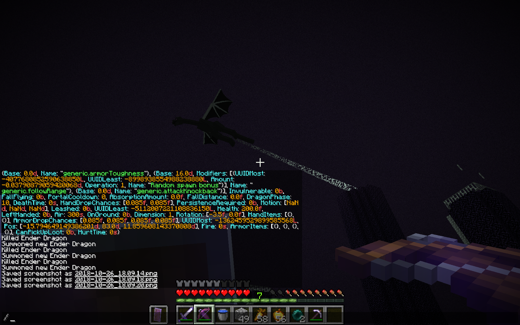 Today I thought I'd try and beat the Ender Dragon with the new crossbow. Sadly when I finally reached The End there was no dragon at all. So then I decided to spawn one. I did the following: