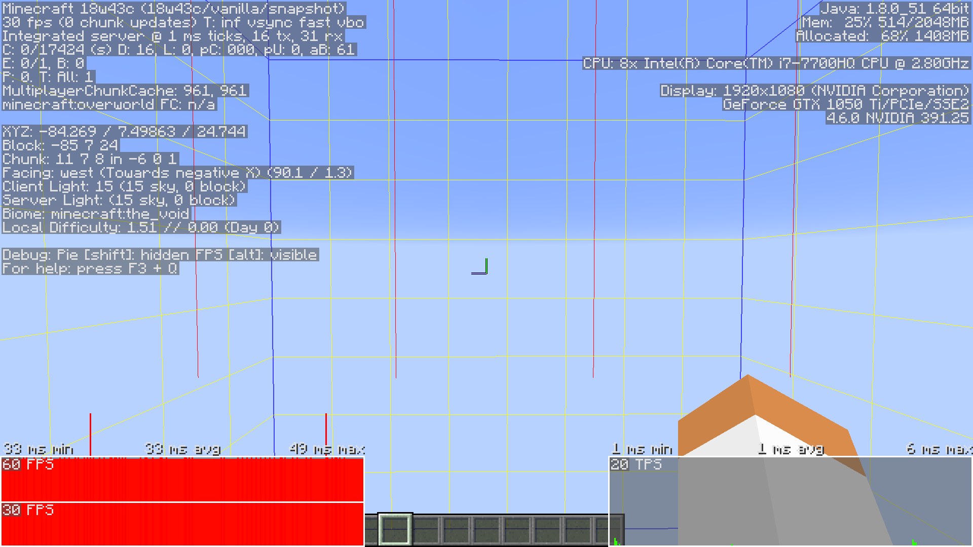 When traveling through different chunks, there is still a lag spike, and you can see that when doing Alt+F3 and walking/flying through a different chunk.
