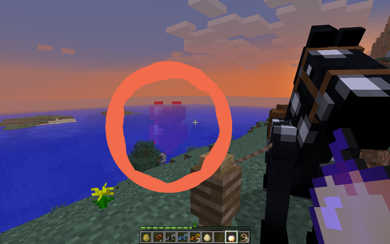 When taming or feeding a horse (maybe pigs aswell), the hearts will appear behind water if it is there.