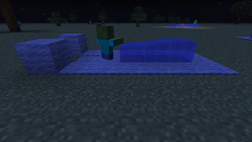 While testing a potential mob trap design, I led zombies down a path of flowing water straight into a carpet over a wool block, which blocked off the water but caused the zombie to sink into the wool block below the carpet. This was fixed by logging out and back into the world.