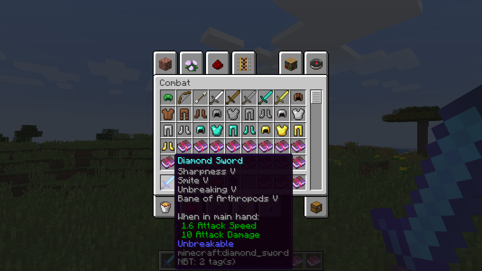 2. type /give @p diamond_sword{Unbreakable:1,Enchantments:[{id:sharpness,lvl:5},{id:smite,lvl:5},{id:unbreaking,lvl:5},{id:bane_of_arthropods,lvl:5},{id:"sweeping_edge",lvl:5}]}