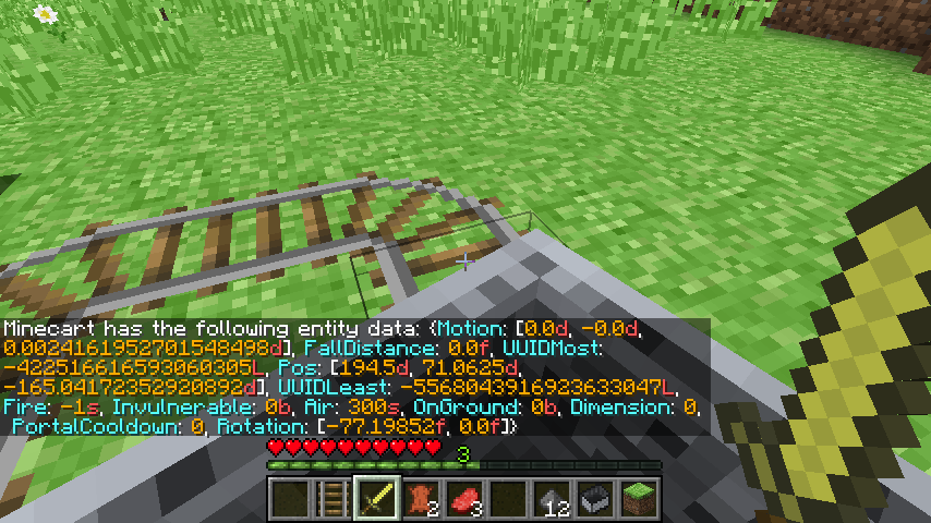 /data get entity @e[type=minecraft:minecart,limit=1]