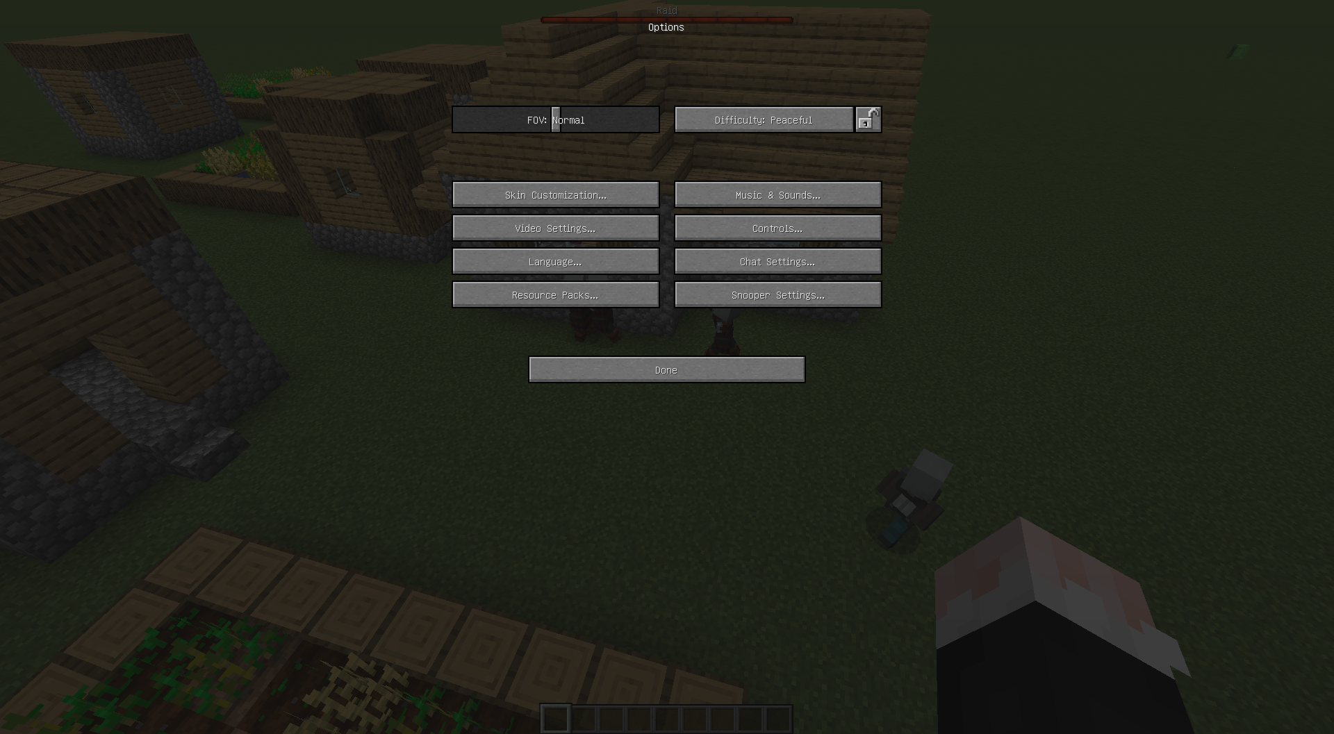 Raid never finishes if the player is set to peaceful mode when subjected to raids.