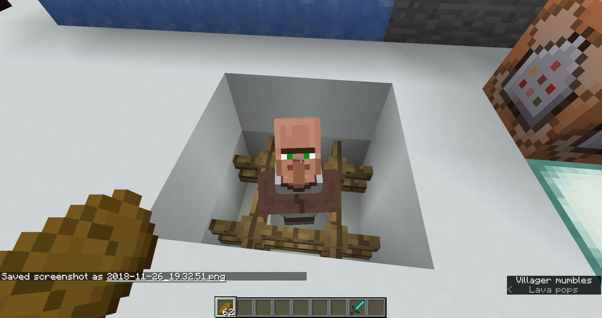 Throw bread at a villager and listen closely/use subtitles. No sound is produced.