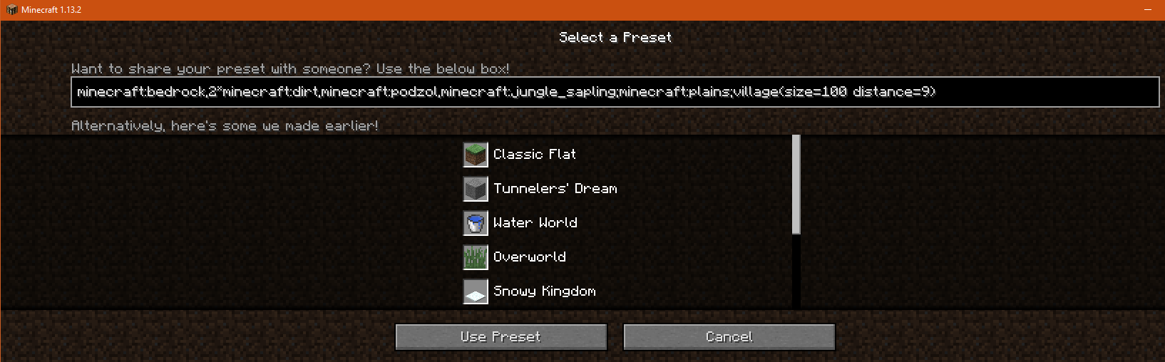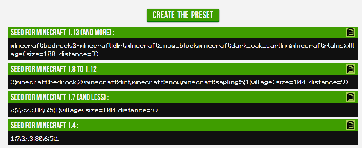 Additionally, trying to create a super village on Superflat with a snow top layer & dark oak saplings in either version will fail to generate & crash.
