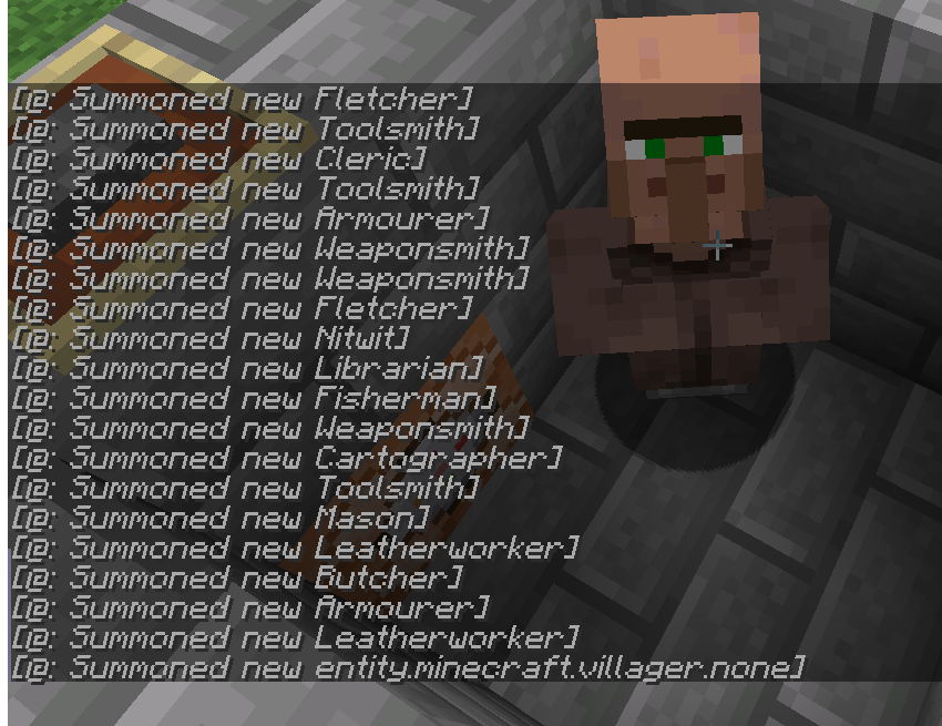 This villager is separate from the existing and named "Nitwit", and is not the new named, GUI-less "Mason" either, as can be observed from the command output in the screenshot.