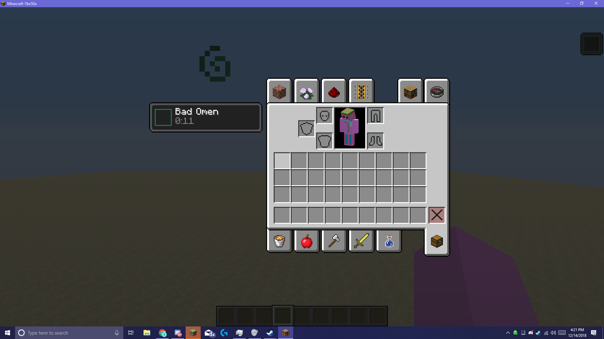 With "Programmer Art" active, the "Bad Omen" effect has no icon texture. I know why this is, all effect icons, and survival inventory screen textures are stored in the same PNG file. With Programmer Art active, it changes that PNG file to what is it is 1.13.2, so the other effects get the old icons. However, this also deletes the Bad Omen effect texture, and replaces it with the placeholder texture added in that file. To fix this, simply add the Bad Omen icon to that file, and not any others.