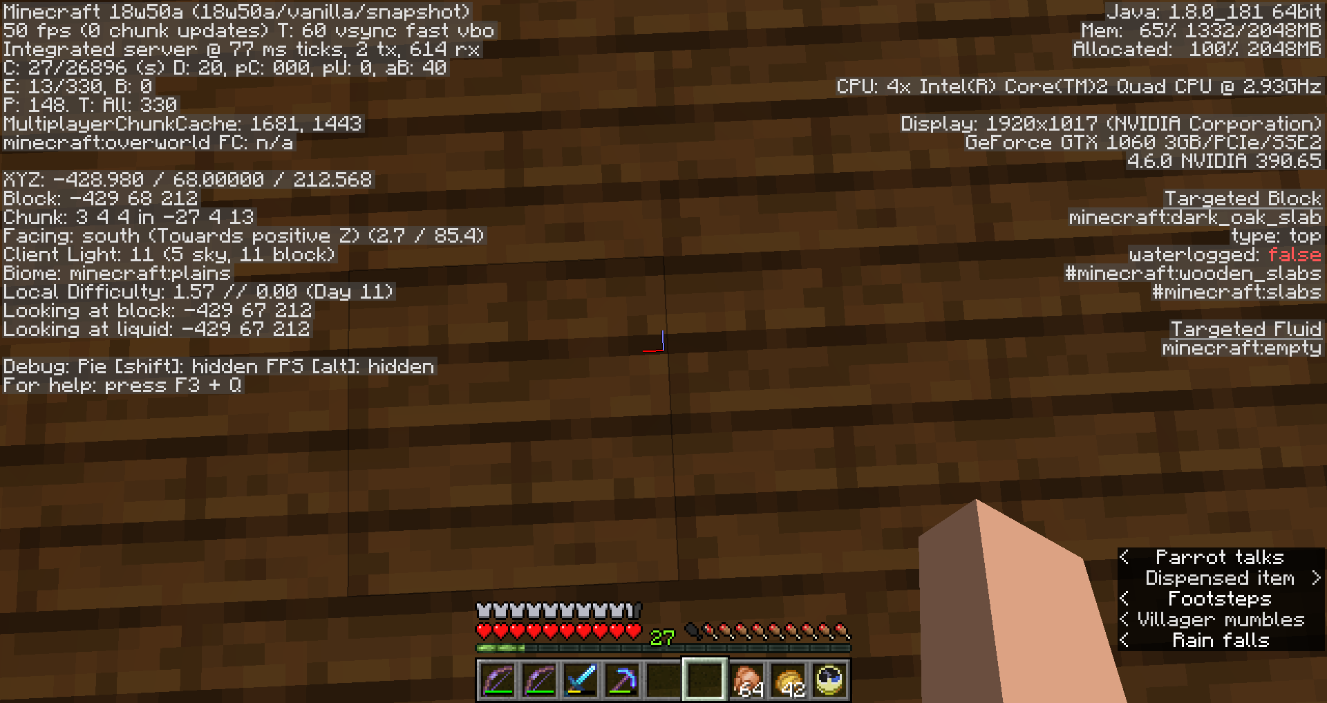 In the snapshot 18w49a my villagers were breeding, but now with that same system in the snapshot 18w50a they won't breed at all. I was afk for 2 days but nothing happened, i think that can be a bug? Or is that system changed with the new skins, i could not found a message about that, so that is why i thought it is a message worth. I use the latest java: 1.8.0-181 64 bit/2048 mb