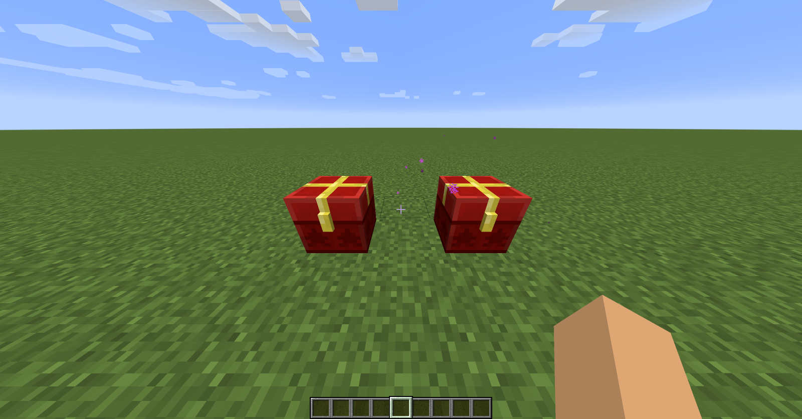 This might be intended but it is not in the wiki so I decided to report. I wanted to see the Christmas textures for the chests, so I changed the date on the computer to 24th December, as the wiki states chests will show their Christmas textures from 24th to 26th December. Everything fine, the chests actually presented like in Christmas, but the Ender Chest changed textures aswell. I got super confused because you cannot really spot the differente between an Ender and a normal chest then, except for the ender particles. As shown in the screenshot, both chests look the same, except for the particles above the right one which is the ender chest.