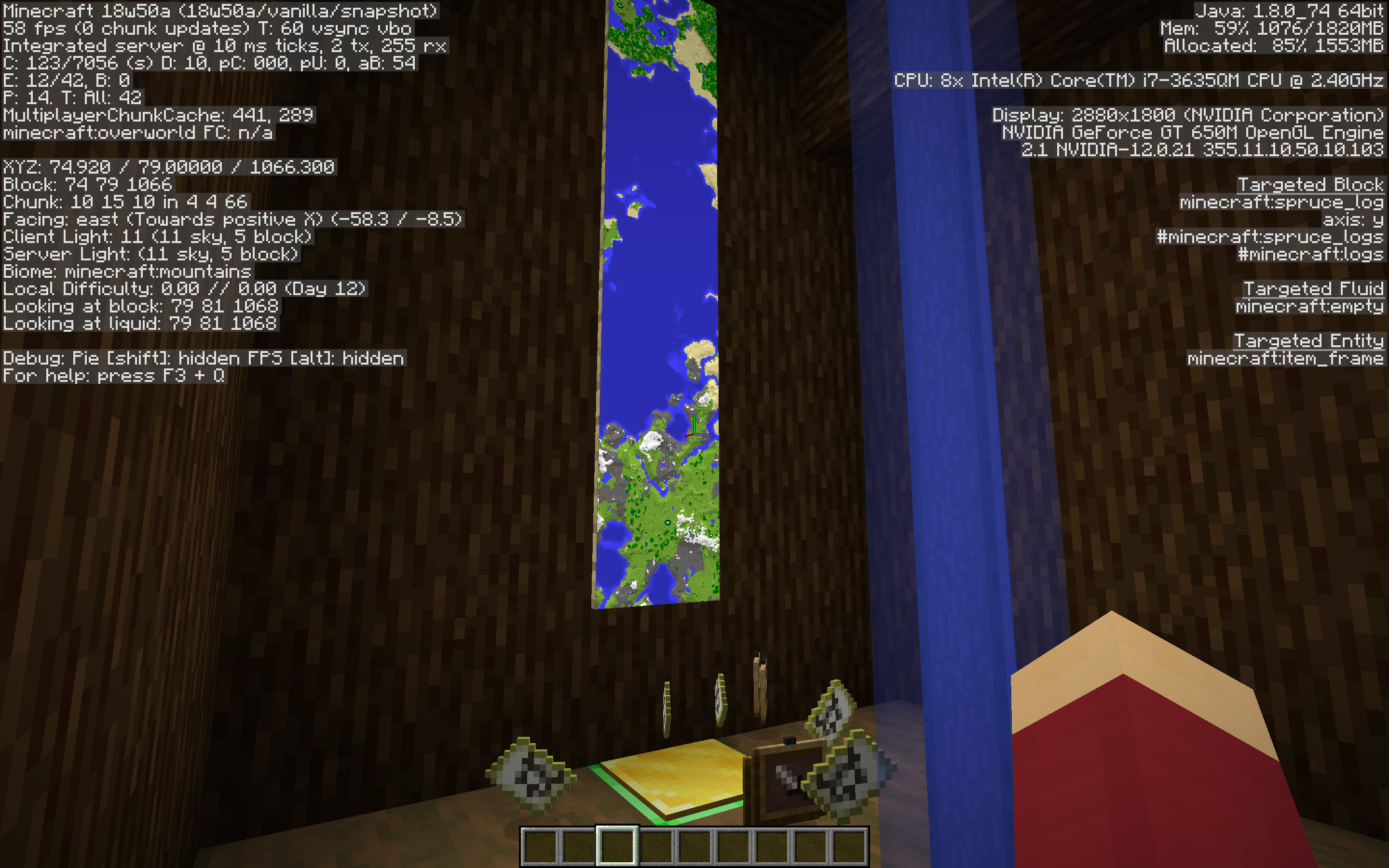 The image with items on the floor and Item Frames on the wall is after reloading the world.