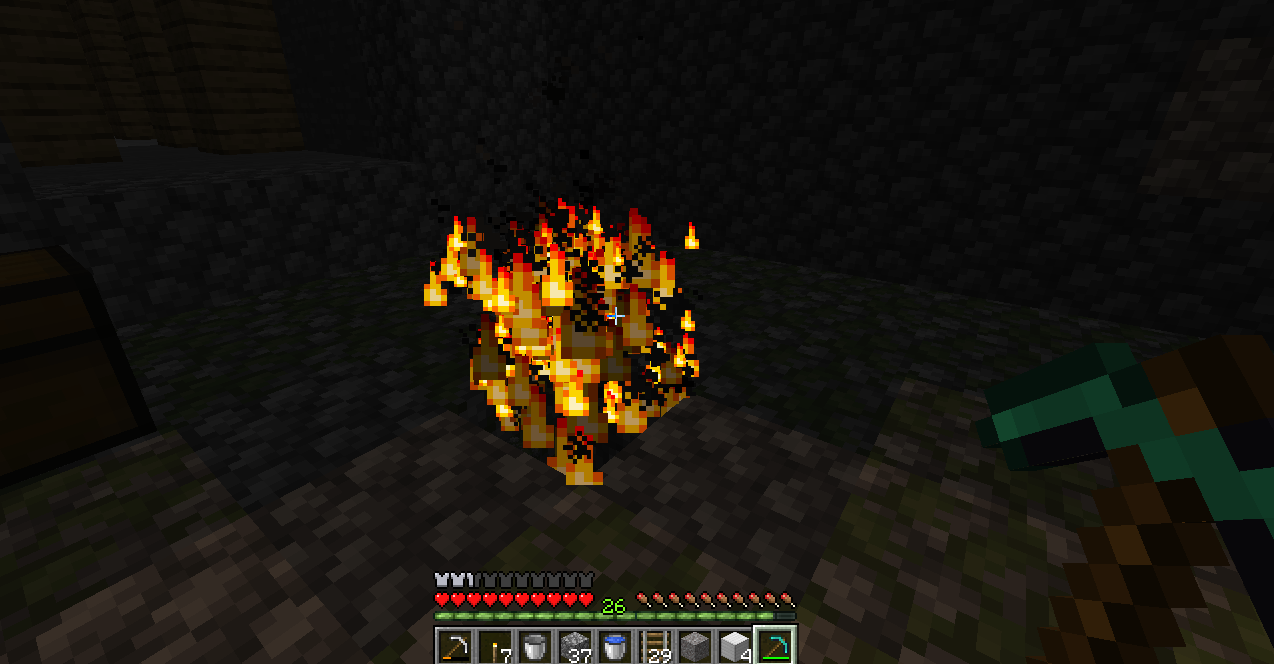 When destroying a monster spawn in a dungeon or abandoned mineshaft, the fire particles do not disappear.