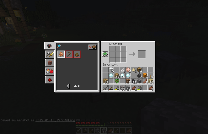 When I open the crafting book from the 4 x 4 or crafting table grid, cooked food still appear despite it not doing anything when I click it.
