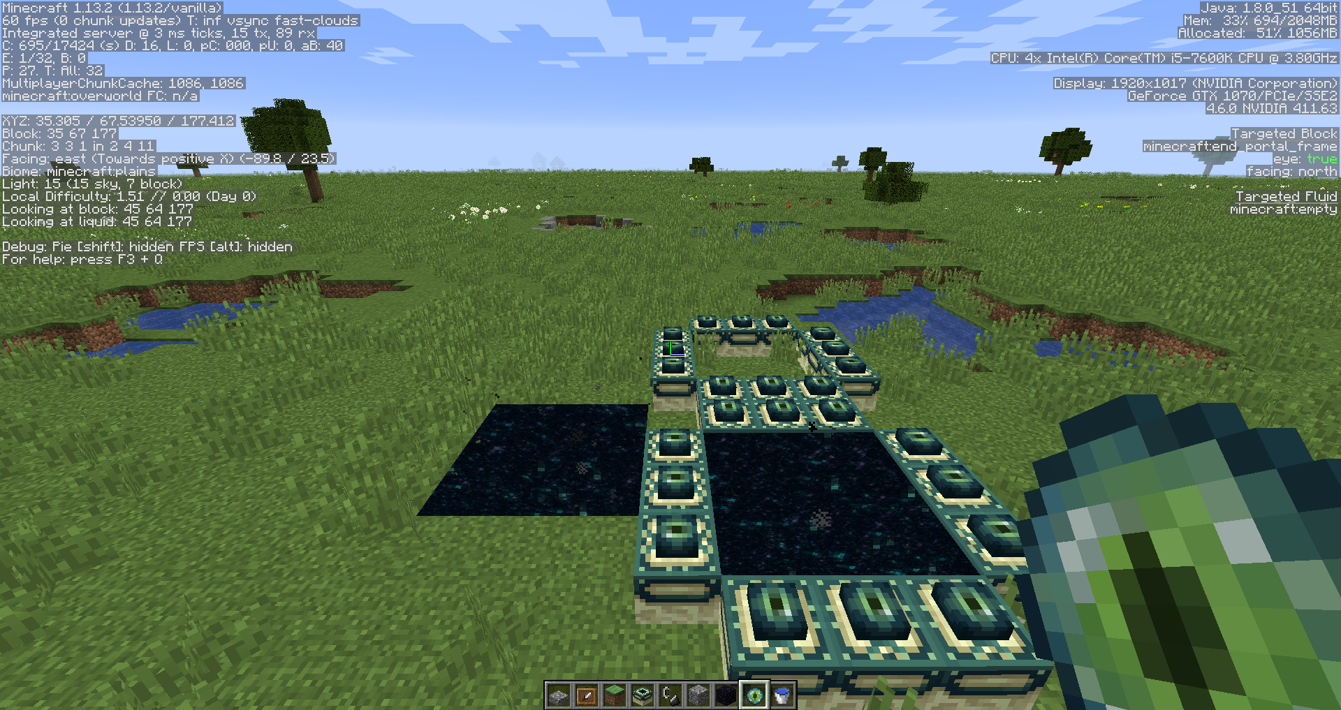 4. Place eye of ender to any frame block of the left row (towards negative Z) of the 'correct' portal frame.