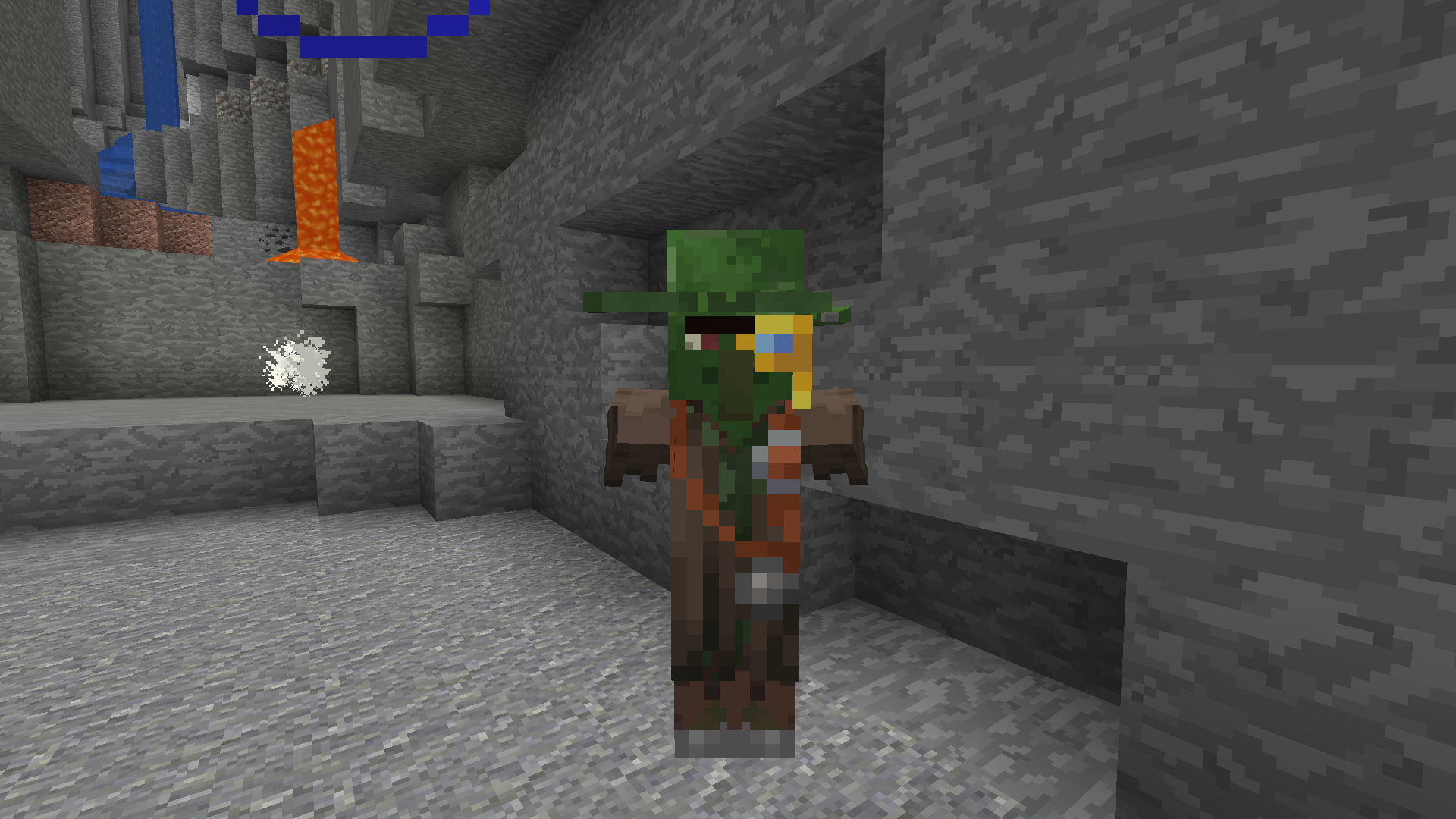 Zombie villager skin is only partially animated, and parts like the arms are completely missing.