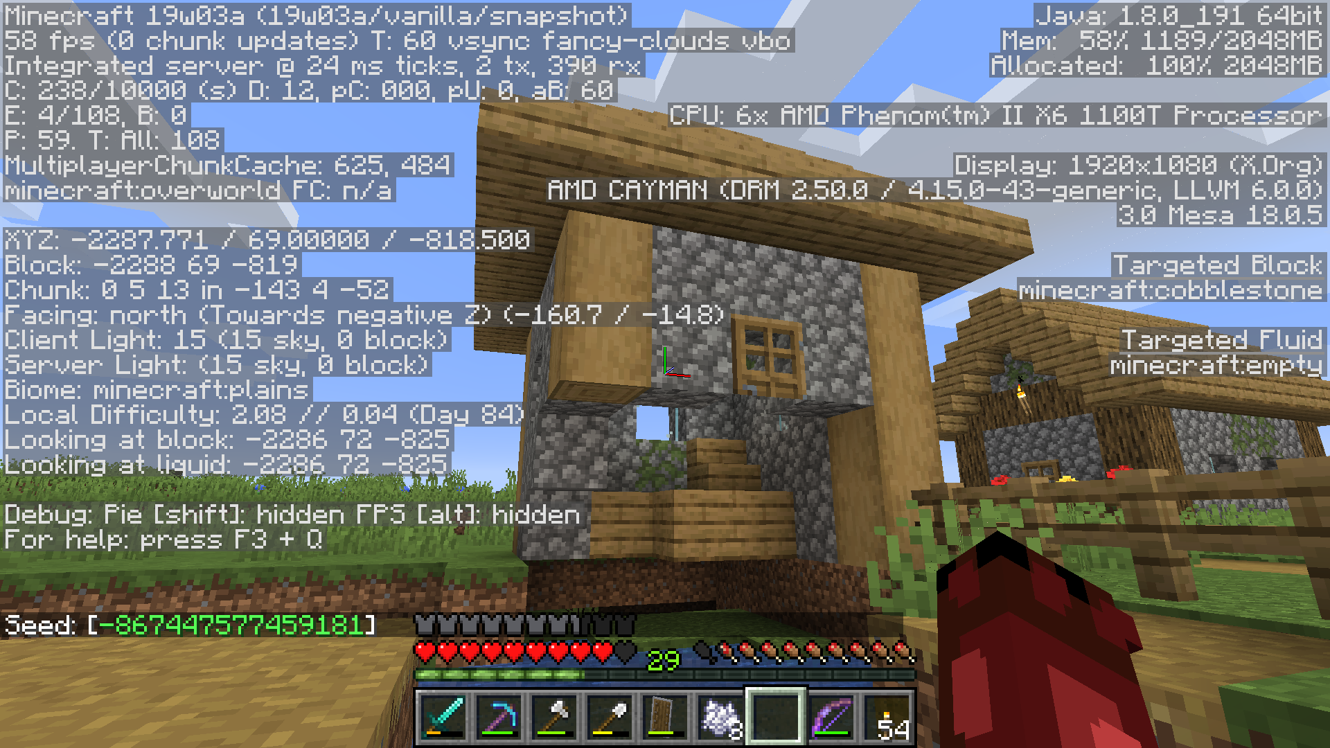 Attached you find a screenshot of a broken house in my world (seed and coordinates inside the image). It's not the first time I encounter those structures. (The fence is not part of the world creation of course and there was a bed inside the house too.)