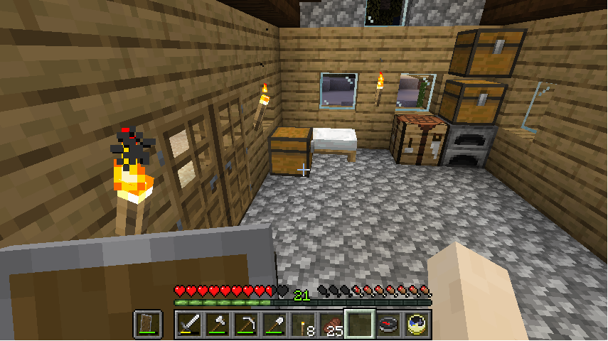 crash png shows the crash after the game freeze, bug.png shows the awake position that it freezes to and bed.orientation.png taken from the chest seen in bug.png shows what way the bed faces for reference where the 'leave bed' screen should be seen as in towards the crafting table but when you away it locks and freezes facing to the side of the bed you'd get out on/away from the wall.