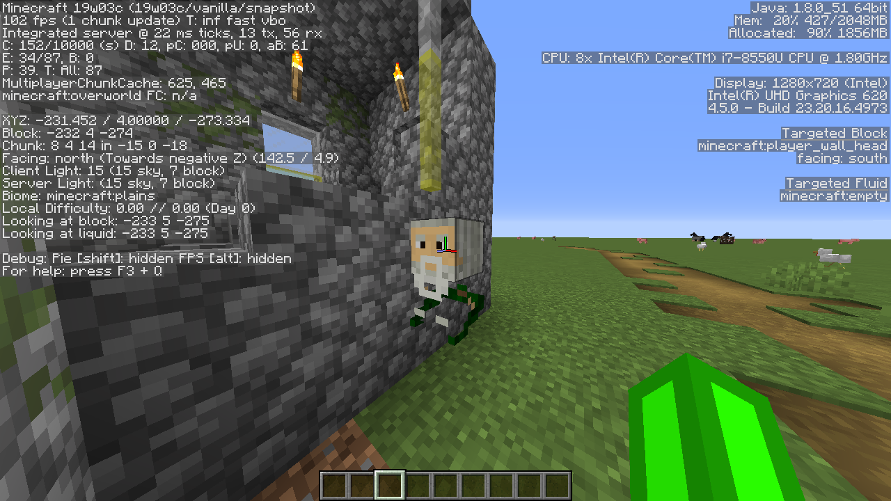 The "hat" layer of a placed(or woren by a player) player head is rendered strange. When placed it renders depending on the direction it faces. The head of a player(without a player head on his head) is rendering as usually.
