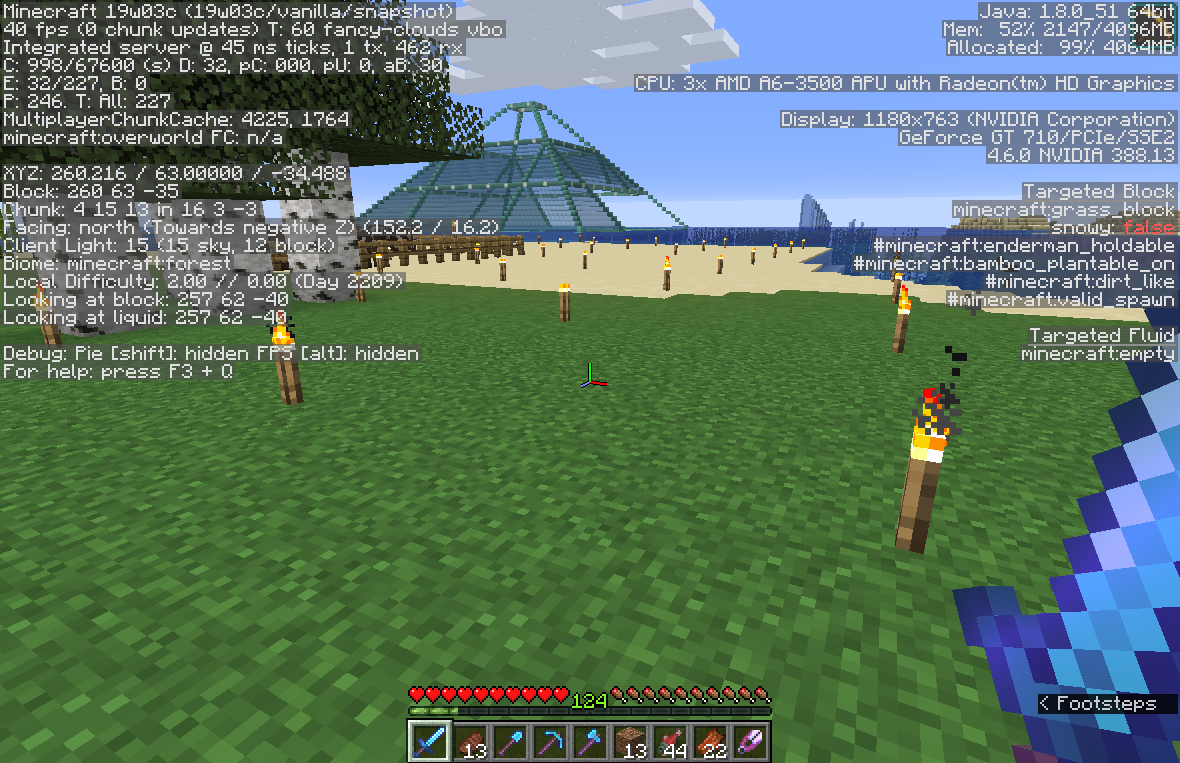 When moving through my world, one that has been constantly updated from 1.13, with the debug screen open, local difficulty changes within the same chunk. At the same time server light level will appear/disappear from the debug screen.