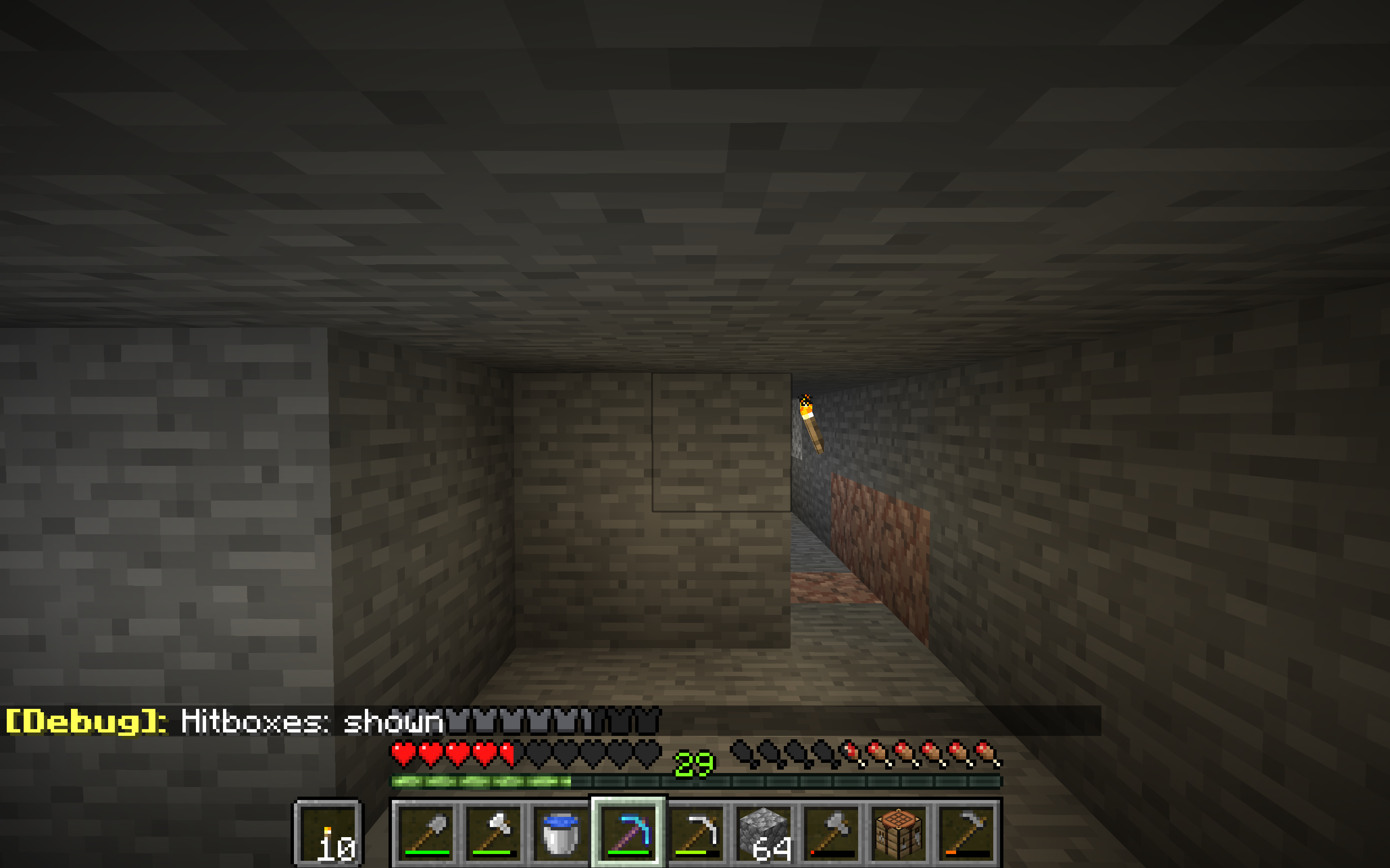 When in F5 mode, player is invisible and has no visible hitbox when activating hitboxes. Is not damaged by arrows or tridents at all.