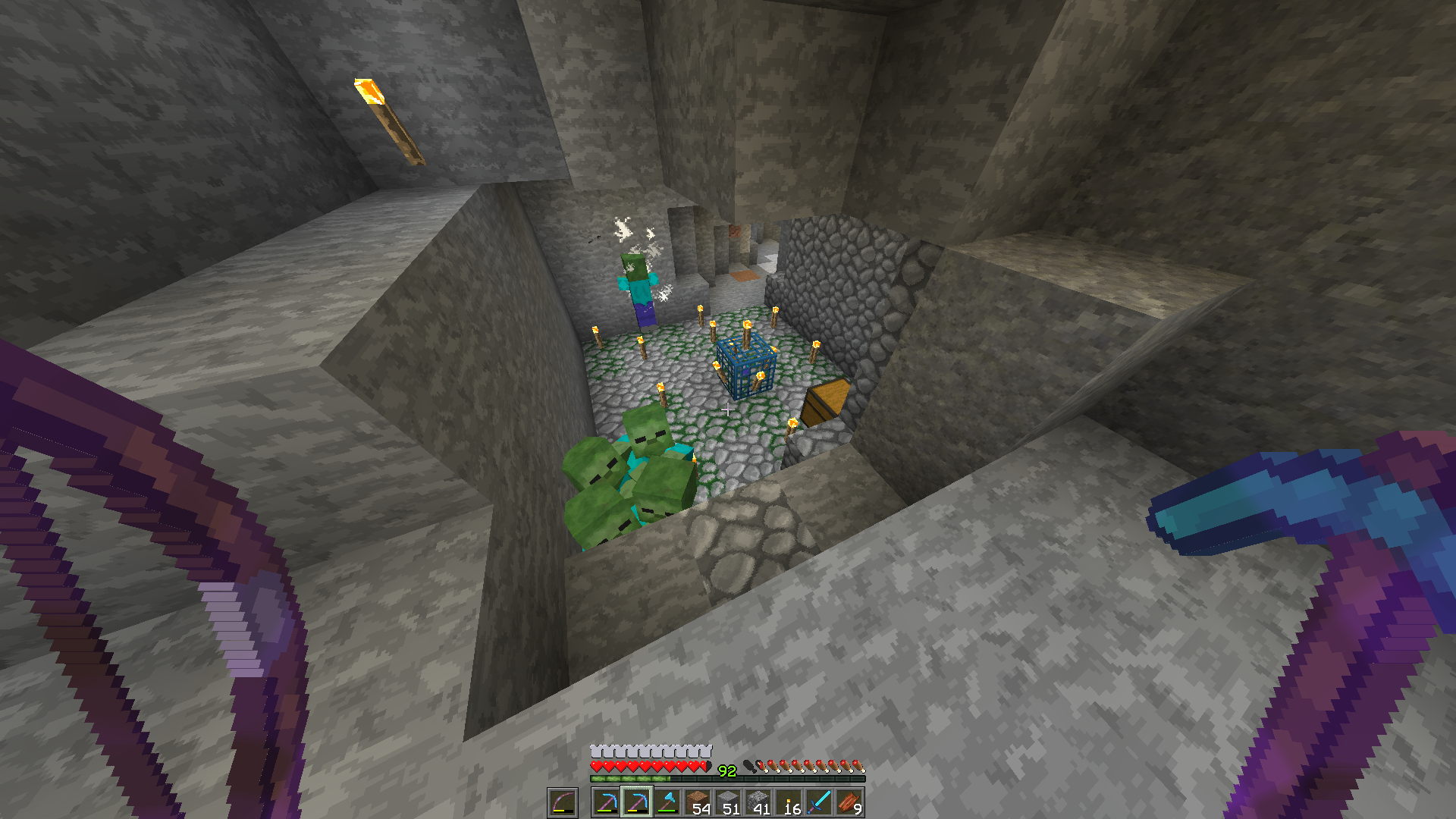 Second time this has been observed with zombies under a strange configuration with lightning not updating near torches (screenshots). This repetitively caused server crashing upon exceeding maximum tick delay. Once again, killing the zombies solved the issue.