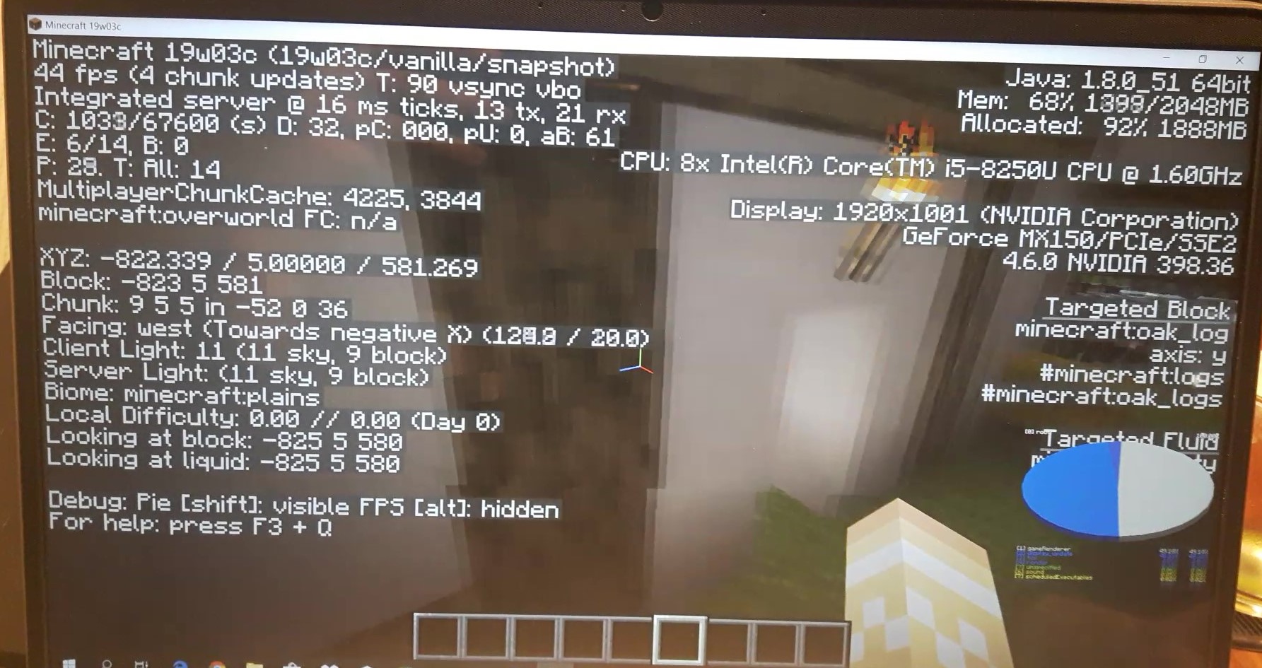 Please provide a screenshot with the debug screen enabled (hit the