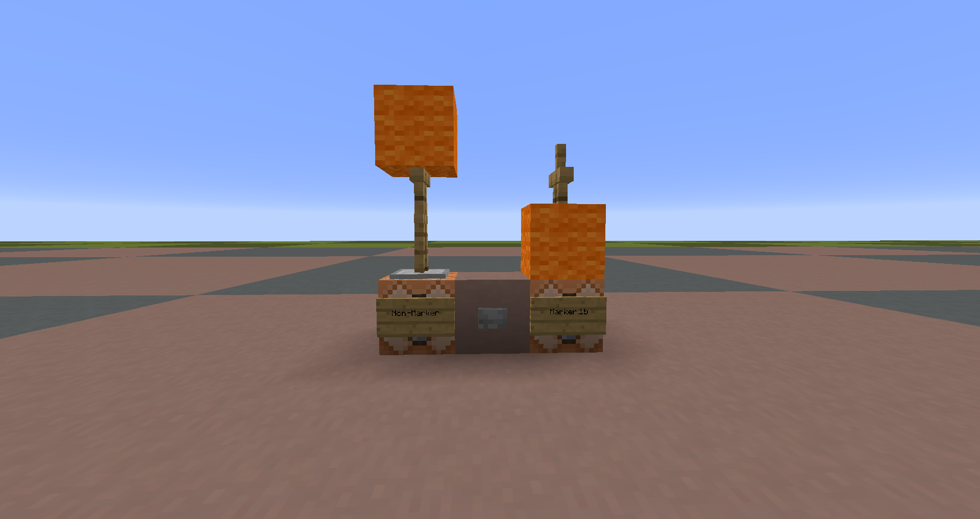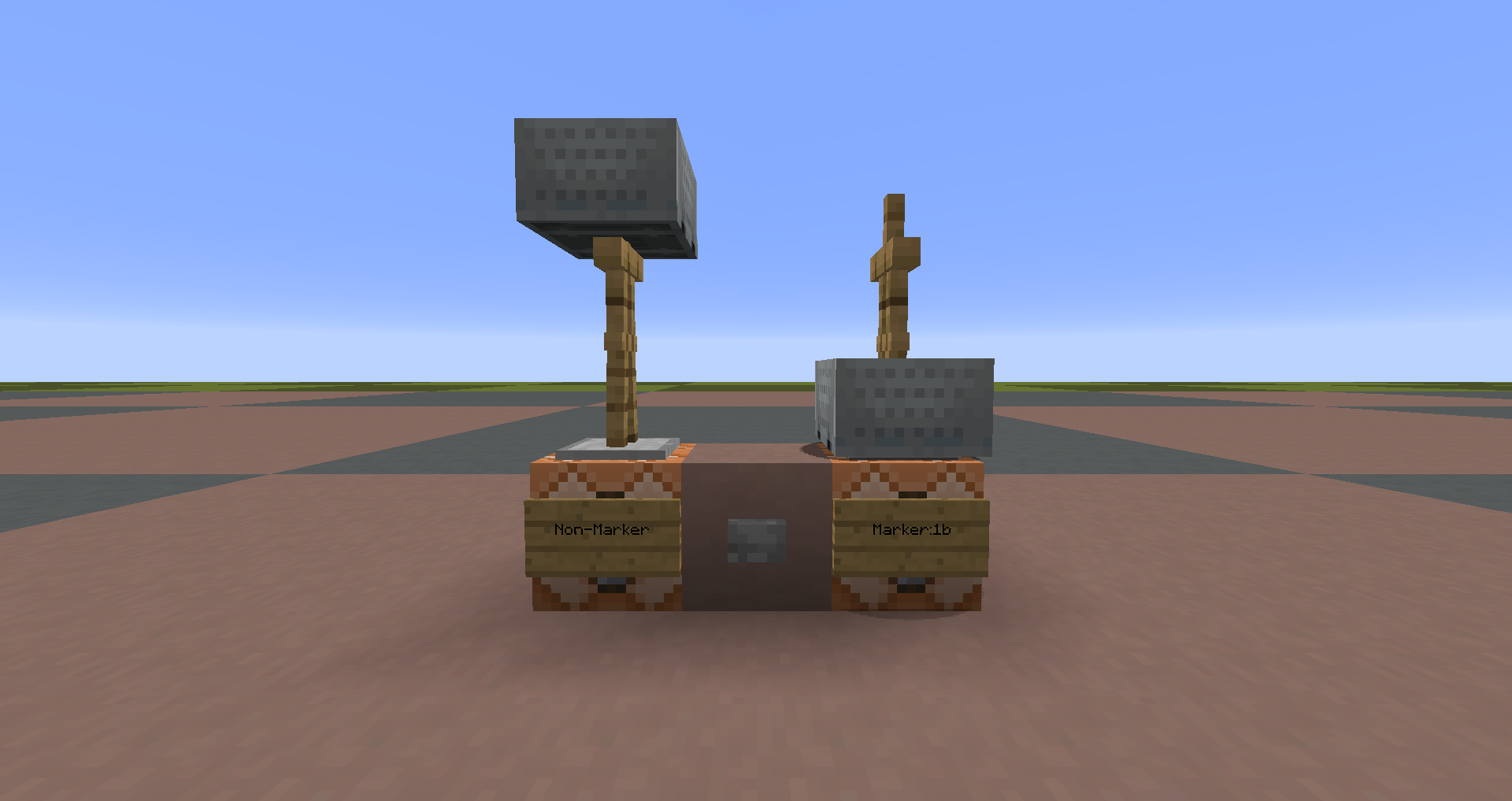 A falling armor stand which has a NBT tag of Marker:1b doesn't collide with a block.