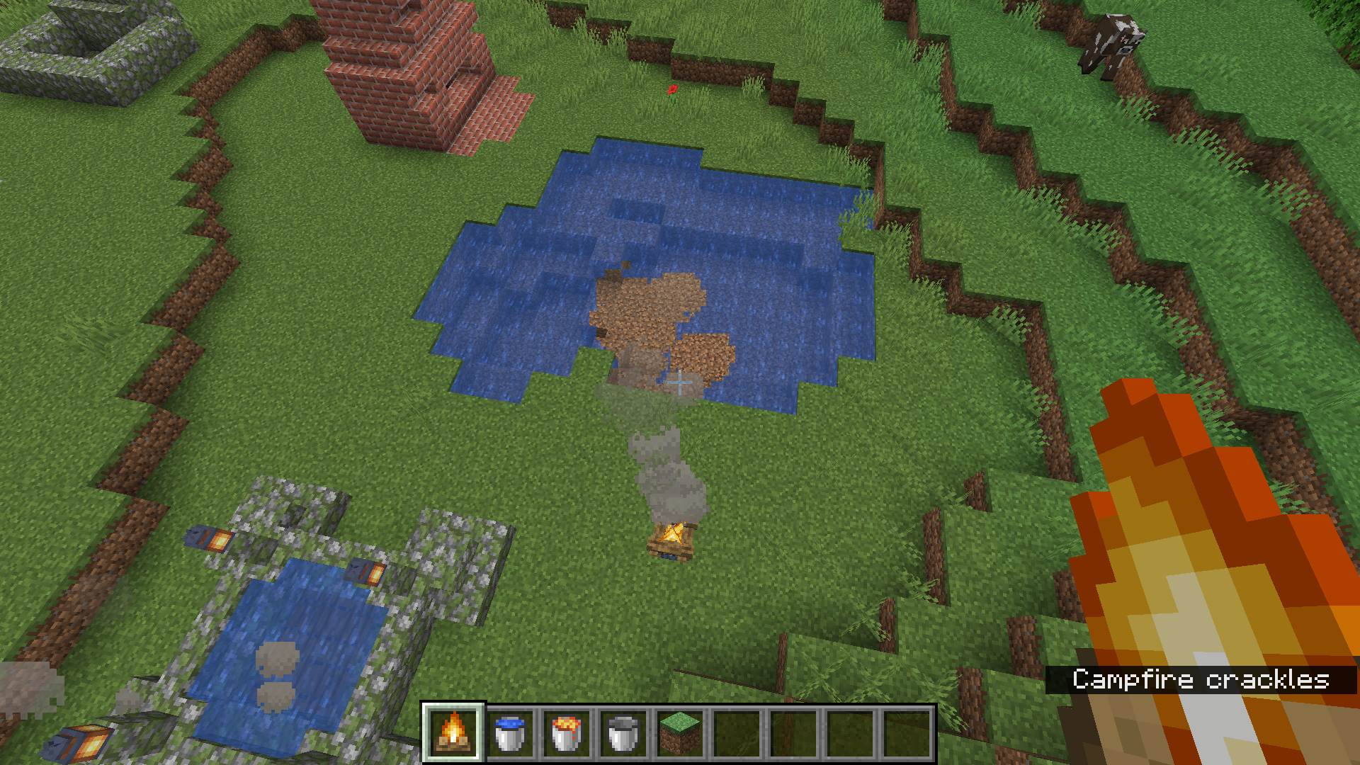 When viewing water through fading campfire smoke particles, the water is no longer visible behind the smoke particles.