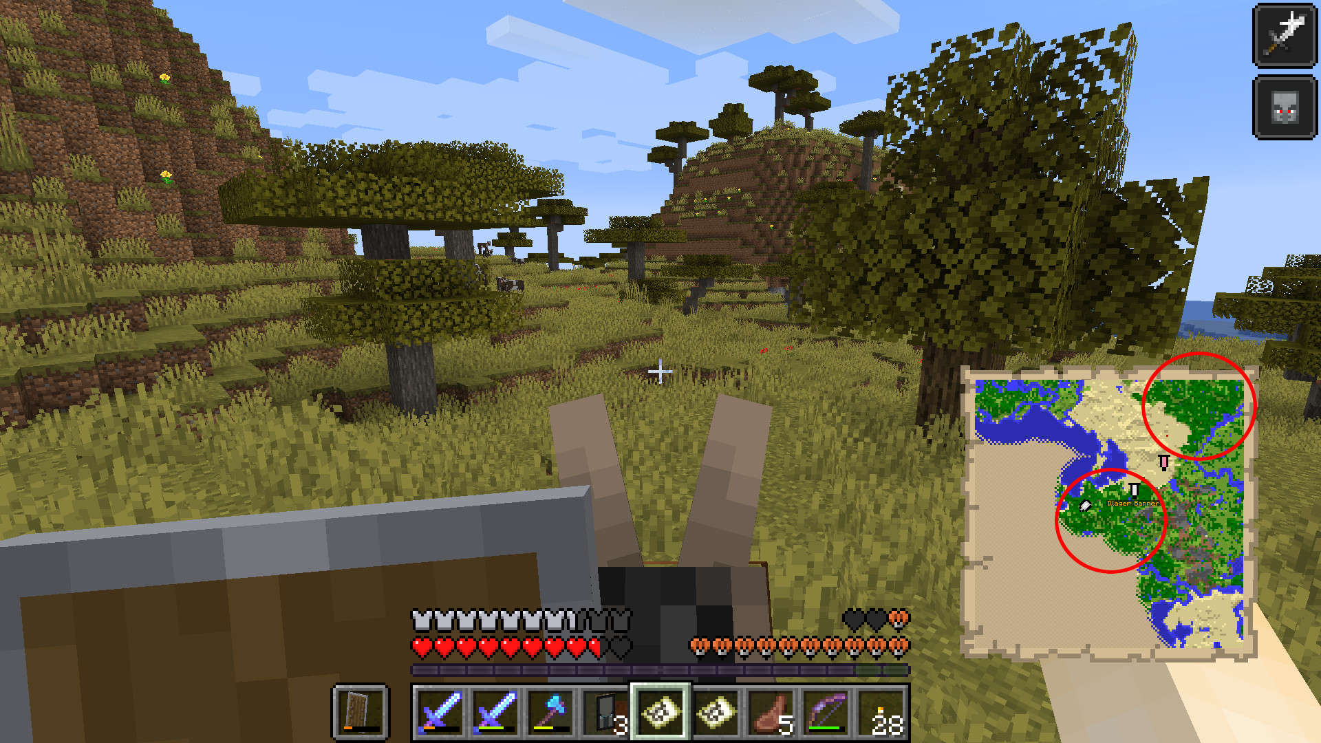 This is not a bug per se, but is quite annoying in my opinion. I marked areas that are savanna in the game world (also my character is inside this biome during the screenshot), but on the map it always looks like a woods or jungle biome. Couldn't that be easily fixed by just replacing current textures with textures of pale plains green that is used in savannas anyways?