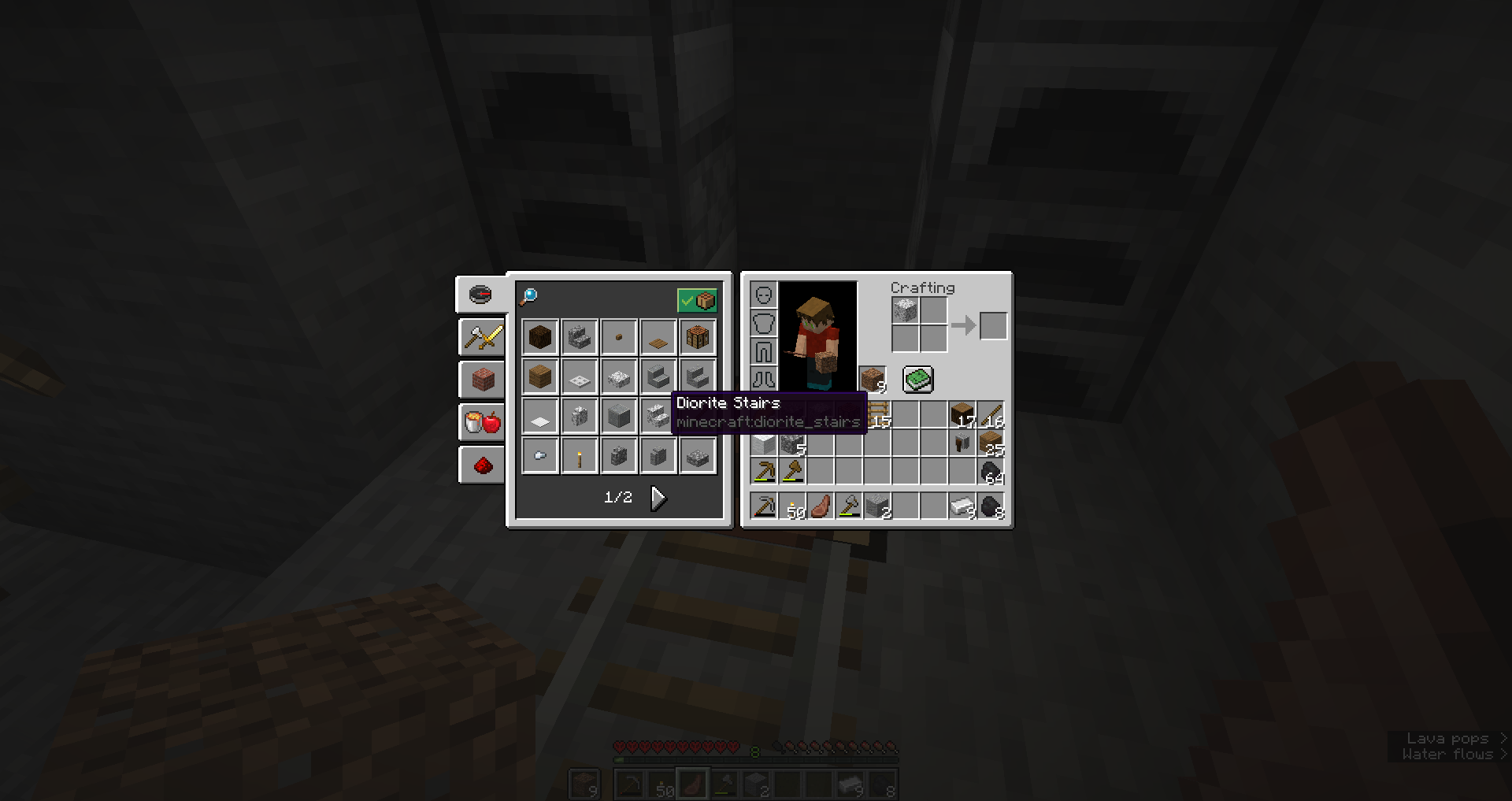 When you open up your recipe book in your inventory and select any slab or stair of the stone varients, it will only result in putting one of that stone type into your crafting hud, regardless if you are inside or outside a crafting bench.