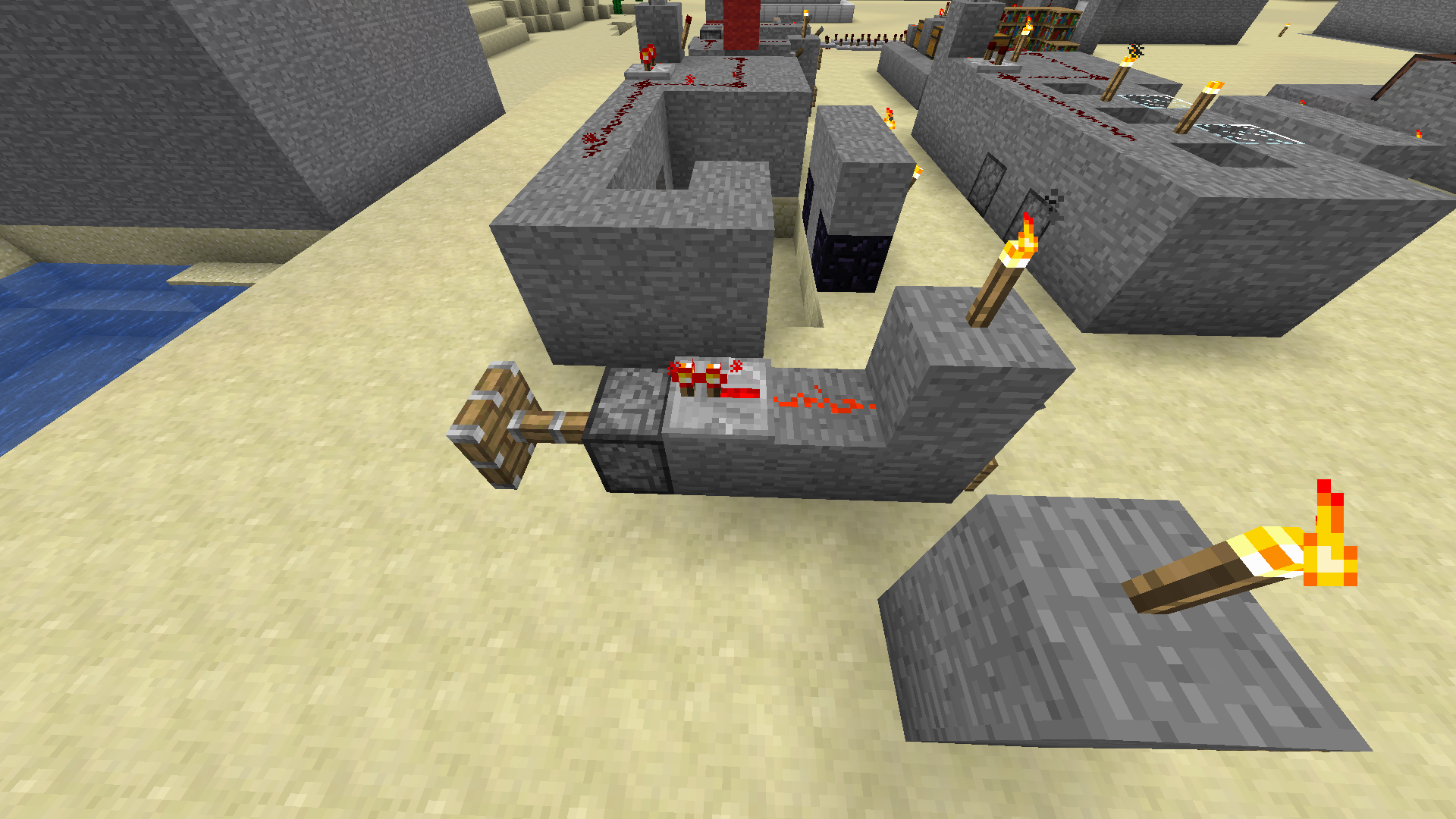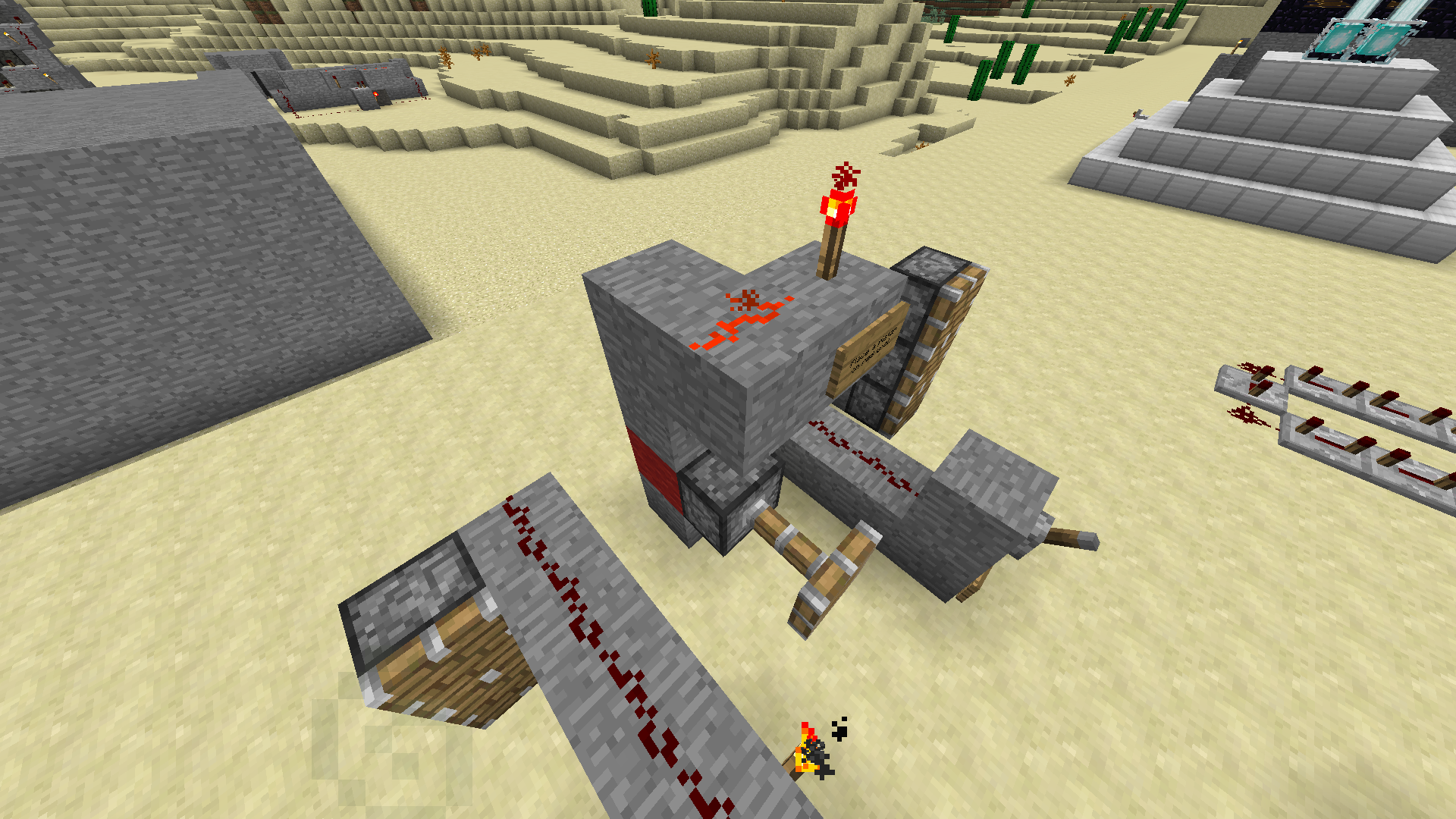 Image 4th bug: Both pistons are powered by the redstone. (Only the upper piston should work)