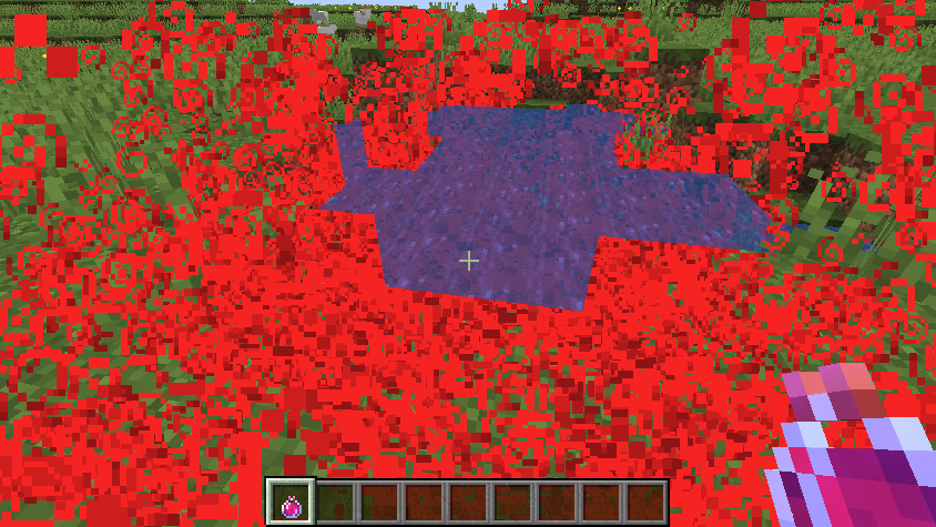 It's simple: I threw a lot of lingering potions (health) and I couldn't see the particles if there was water behind them.