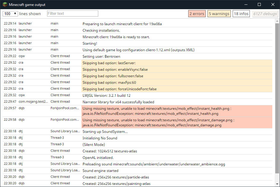 Using missing texture, unable to load minecraft:textures/mob_effect/instant_health.png : java.io.FileNotFoundException: minecraft:textures/mob_effect/instant_health.pngUsing missing texture, unable to load minecraft:textures/mob_effect/instant_damage.png : java.io.FileNotFoundException: minecraft:textures/mob_effect/instant_damage.png