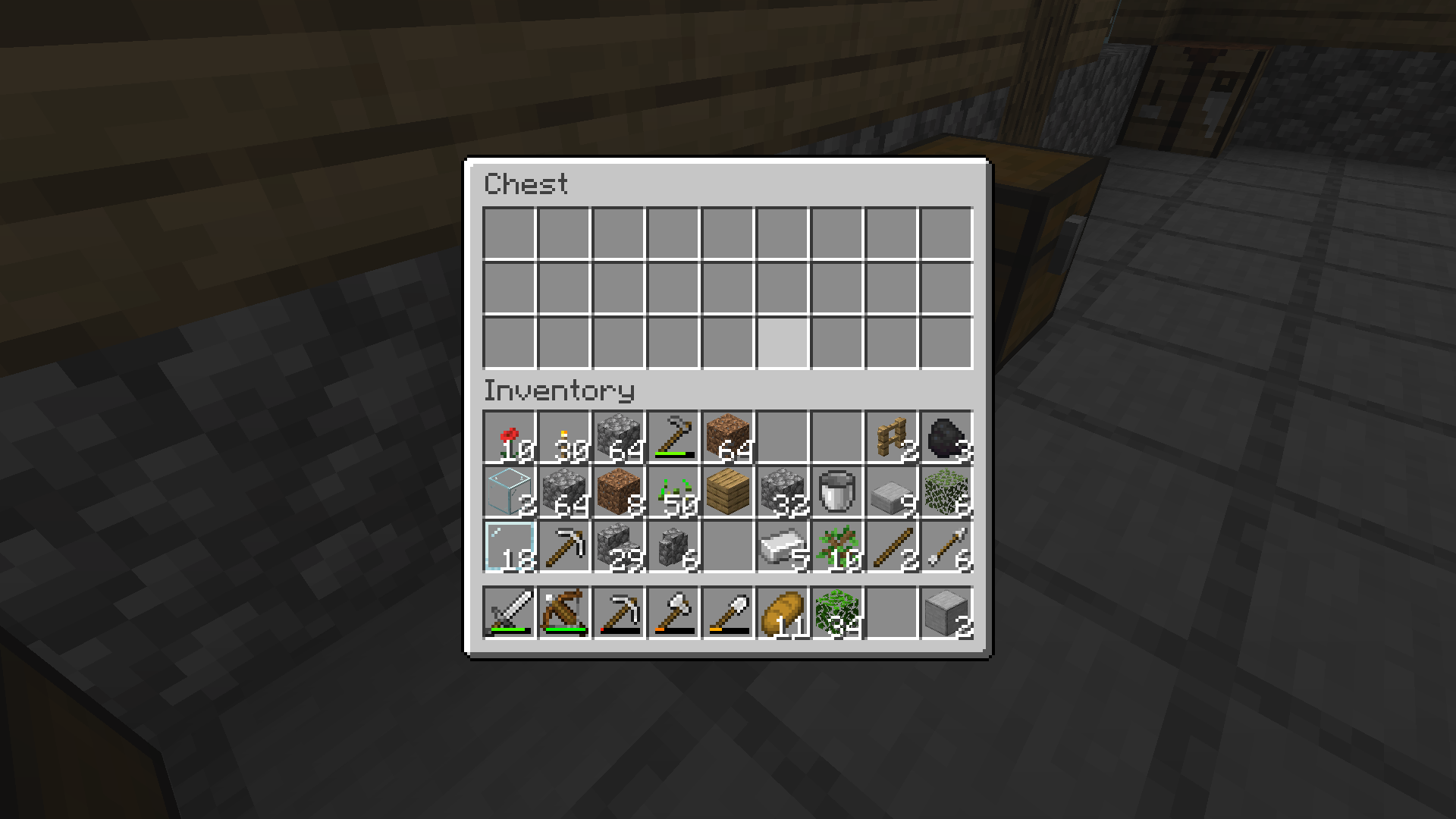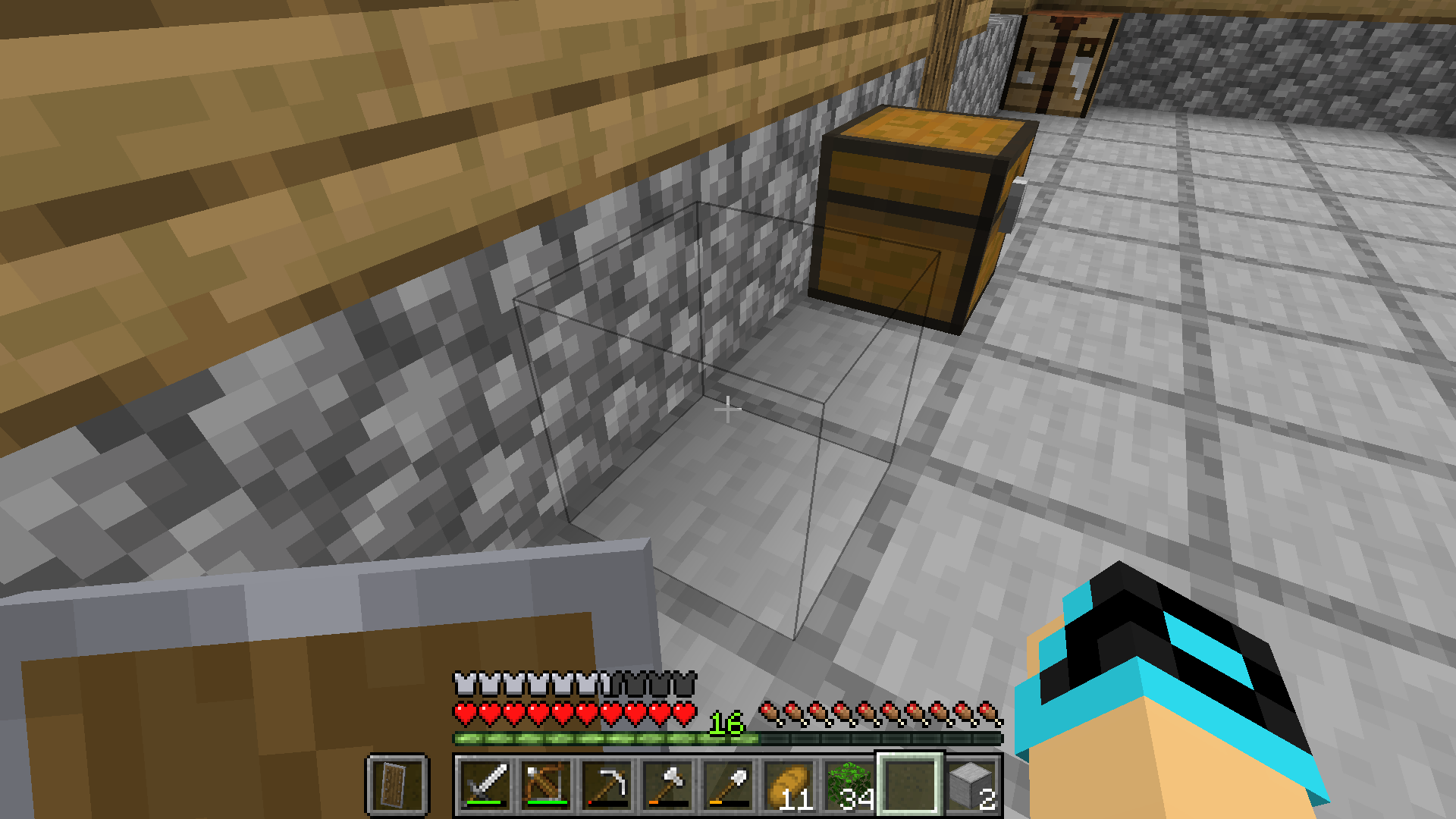 Chests are completely invisible. The hit box still appears and is still openable. Can be stood on and break particle still appears when punched. The chest can be used normally, but doesn't appear to be there when hit box is not active.