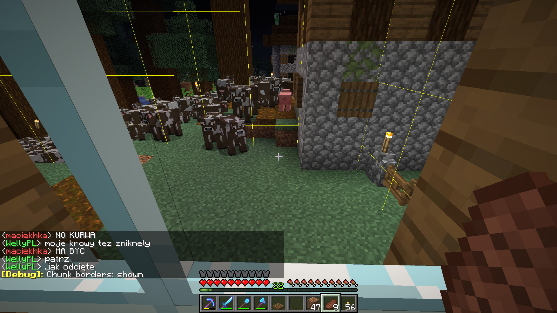 Edit2: Just after joining the server I took a screenshot of how the cows in my farm disappeared from the specific chunk I spawned in. You can clearly see the corelation between other cows' positions and the chunk border. The screenshot is attached below.