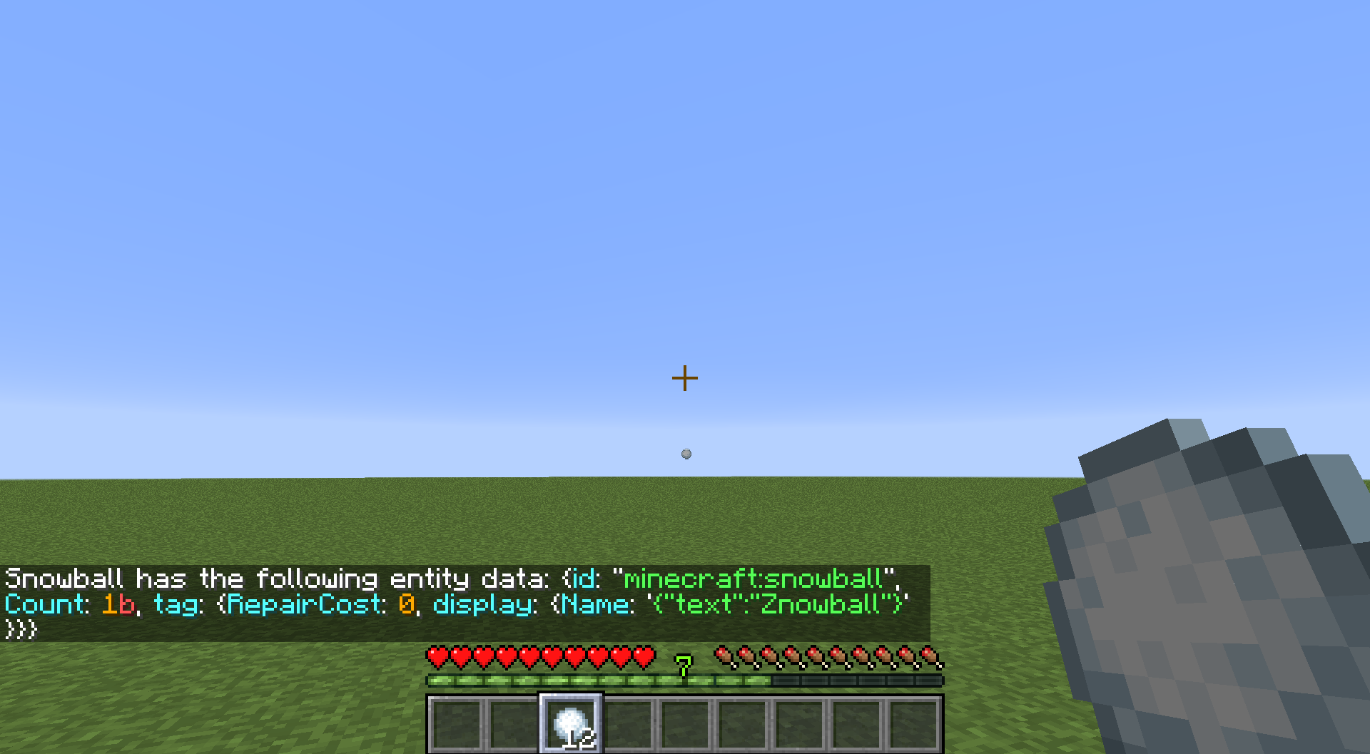 Now, repeat the process with two or more snowballs. Throw exactly one snowball, and repeat the command. Behold the snowball's delicious item data.