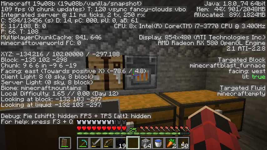 I just started a small Minecraft Survival world on the latest snapshot last night. The first strange bug I noticed was that my chests no longer made sounds. Next morning launched the game, and found out that my blast furnace wasn't working at all and neither were my normal furnaces. They're frozen at whatever smelting value they were at before. Save & Quit along with reloading the world doesn't change anything. Quitting the game all together and re-launching causes the furnaces to update once and then they stop updating again.