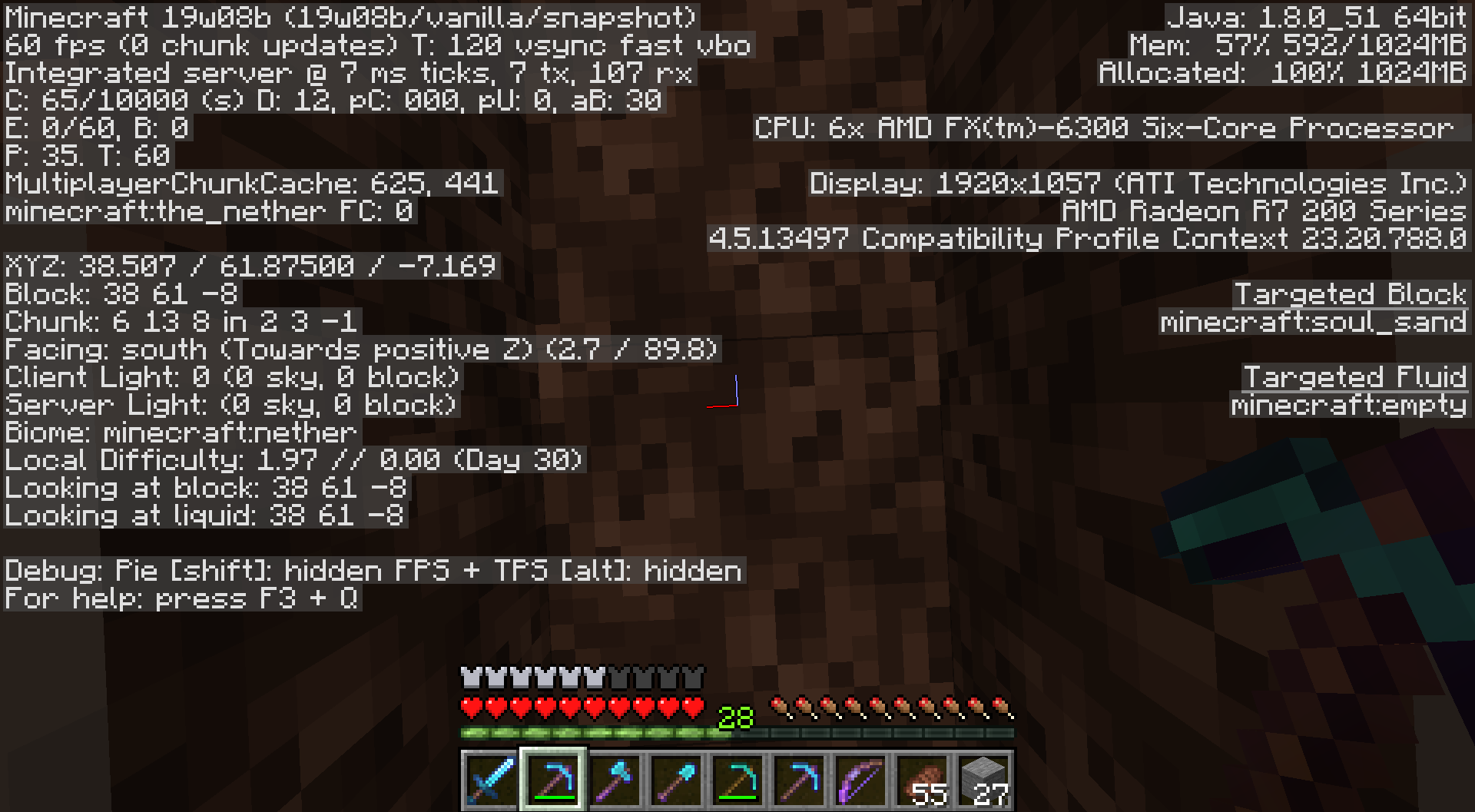 1. Attempt to place a Stone Block at the coordinates I am standing on in the Nether.