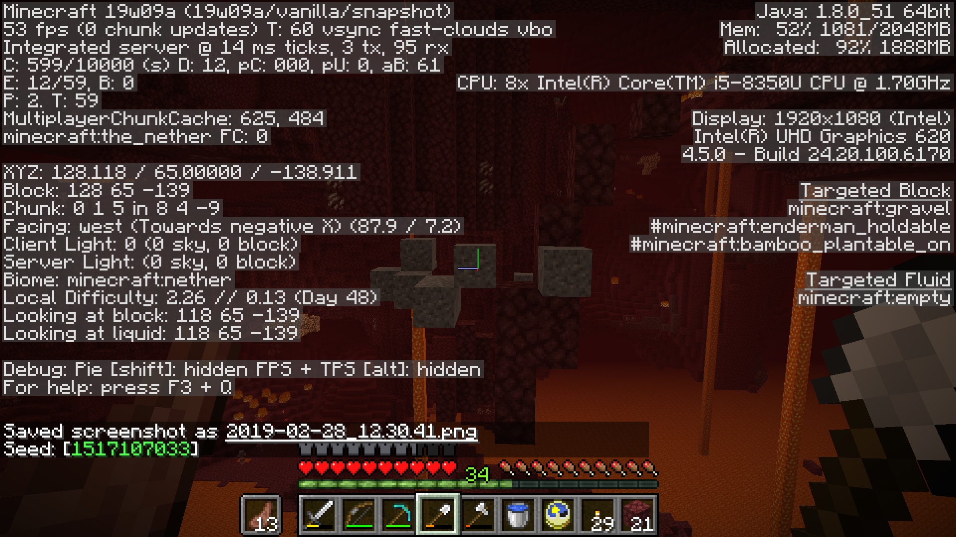But when you break the gravel blocks, they don't all seem to be consistently chained together. Screenshots with the seed and location of the nether for you to verify.